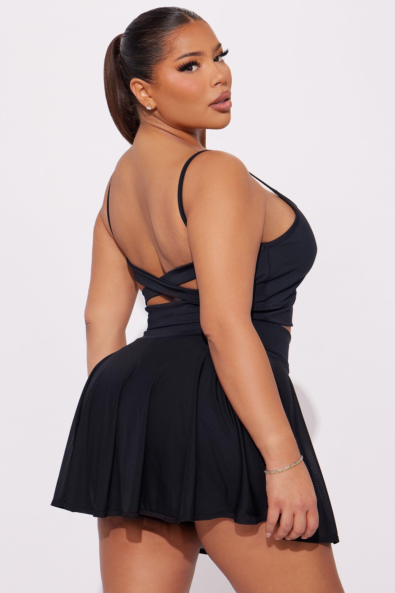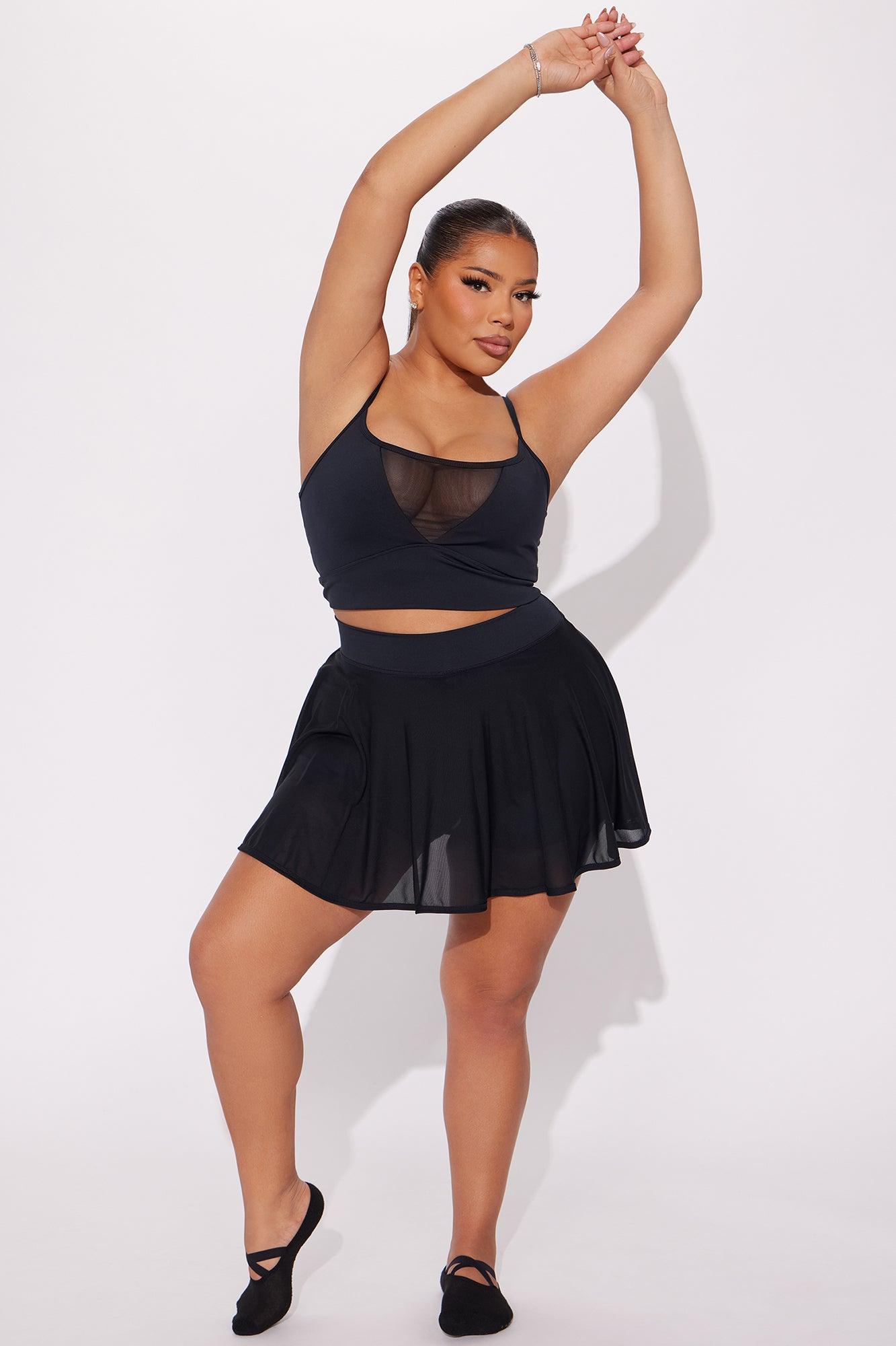 Available In Black And Light Taupe. Active Skirt Set Active Sports Bra Scoop Neck Sleeveless Cutout Detail Active Skort Elastic Waistband Mesh Overlay Elevate High Impact Stretch Body/Short: 73% Polyester 27% Spandex Inner Mesh/Skirt: 82% Nylon 18% Spandex Imported
