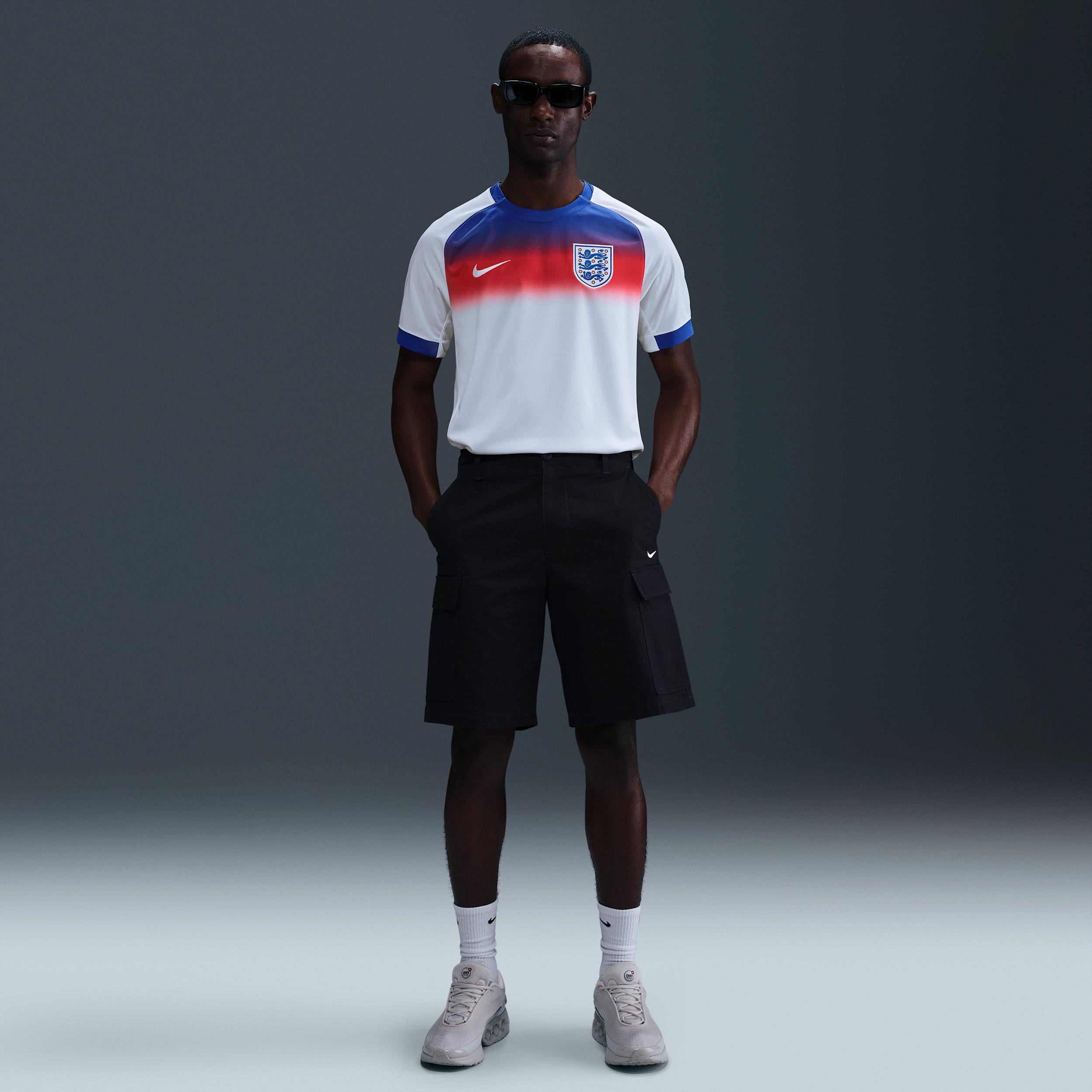 To be a Lioness is to be more than an athlete. Its about respecting tradition while challenging the status quo to build a bright tomorrow. Inspired by retro sportswear and Lioness kits of the past, the England 2025 home uniform uses classic English colors in a modern, energetic execution that looks to the future of the sport. Inspired by the Pros:Our Stadium collection pairs replica design details with sweat-wicking technology to give you a game-ready look inspired by your favorite team. Stay Dry:Nike Dri-FIT technology moves sweat away from your skin for quicker evaporation, helping you stay dry and comfortable. [] Product Details:Replica design. Rose detail on interior neck. 100% polyester. Machine wash. Imported. Style: FZ9012; Color: Hyper Royal/White/White; Size: 2XL; Gender: Male; Age Group: Adult | England 2025 Stadium Home (Womens Team) Mens Nike Dri-FIT Soccer Replica Jersey in Blue, Size: 2XL | FZ9012-405