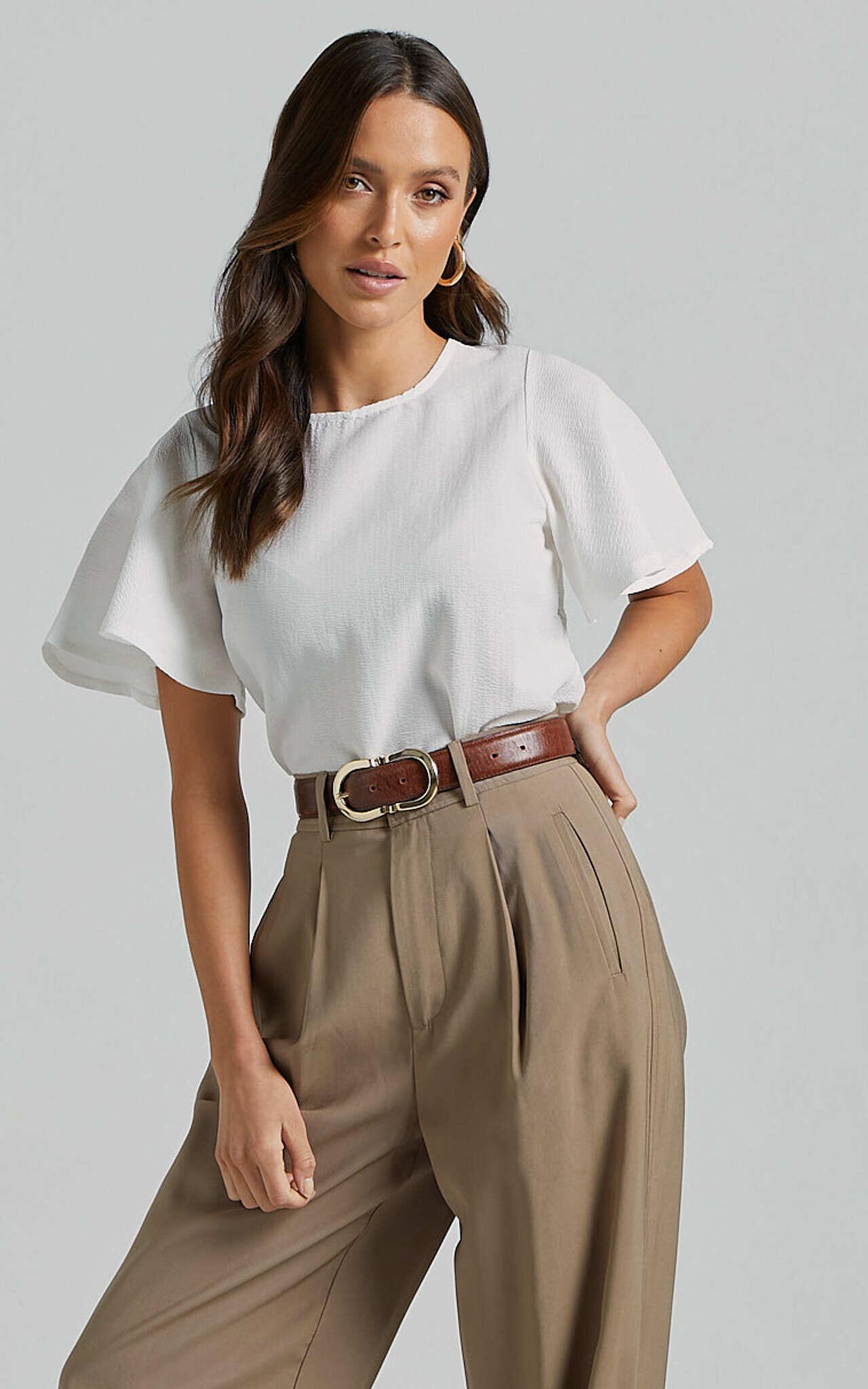 With its flutter sleeves and scoop neckline, the Enzo Top brings a touch of femininity to any outfit. Made from textured woven polyester, this white top is perfect for both casual weekends and office wear. The short sleeves provide comfort while adding a stylish element to your ensemble. Pair it with jeans or dress it up with trousers - the versatile Enzo Top is a standard in every fashionista's wardrobe.Product Details:Textured woven fabricScoop necklineShort sleevesMade of polyesterStandard lengthSuitable for casual and workwear occasions.Size and FitSize S / 8 length: 64cm / 25.2inStudio model is wearing size XS / 6 AU / 2 US / 6 UK / 34 EUStudio model measurements are:Height: 170cm / 5'7''Bust: 84cm / 33''Waist: 61cm / 24''Hip: 88cm / 35''Material and CareMain Fabric: 60% Cotton, 40% PolyesterLow / No stretch