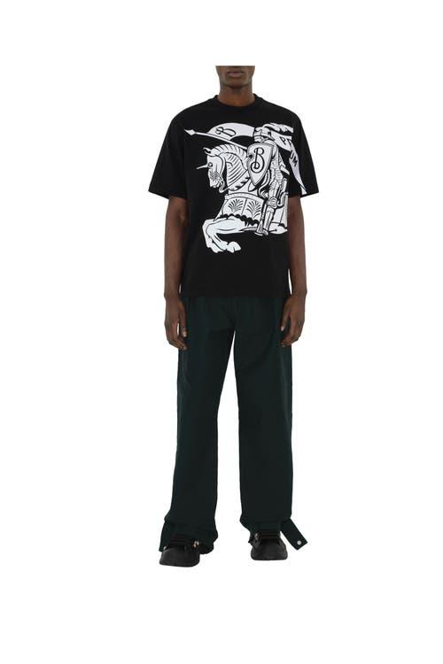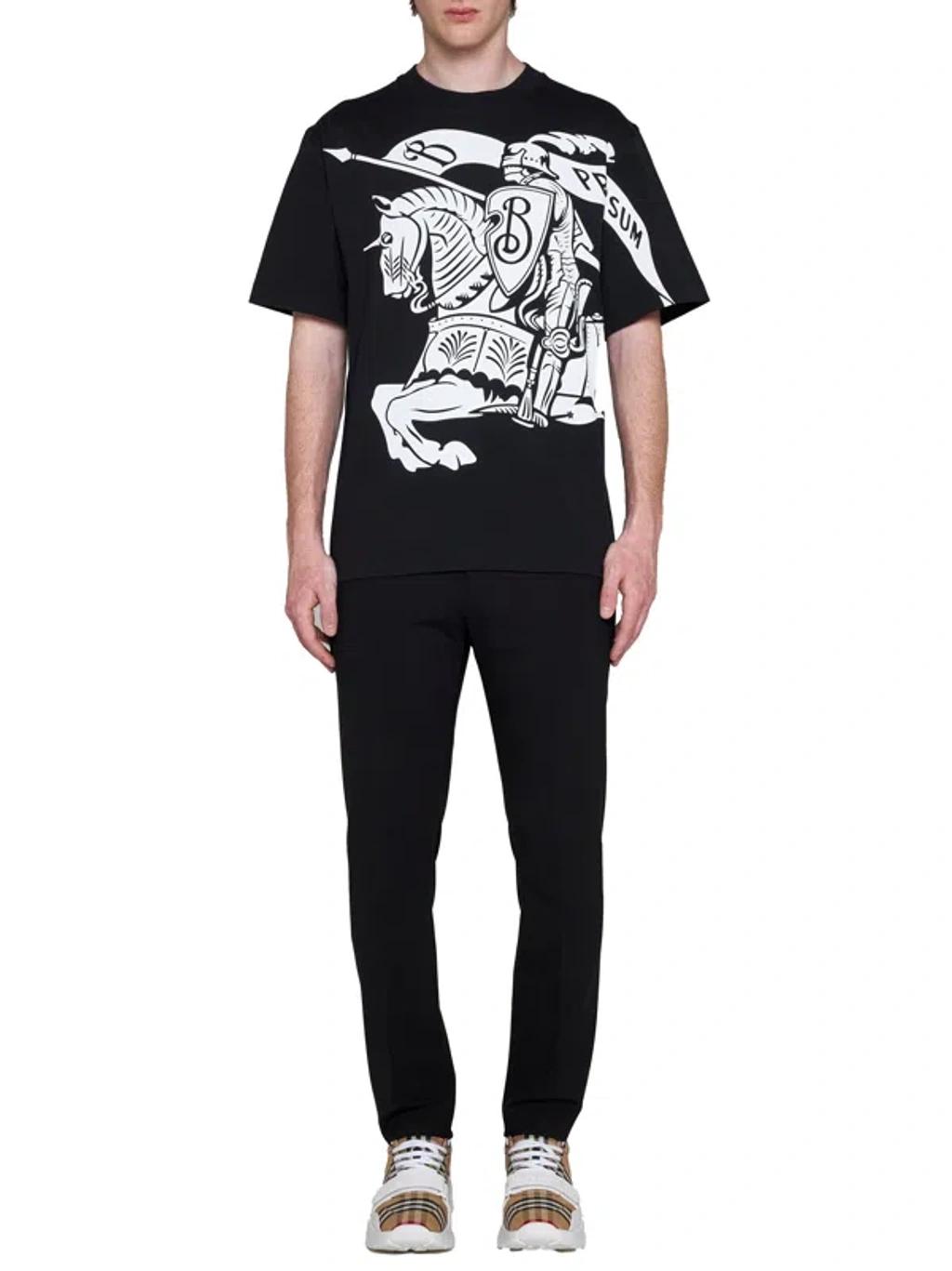 Shop Burberry Black T-shirt With Contrasting Equestrian Knight Print In Cotton Man from 800+ stores, starting at $294. Bringing a fresh perspective to heritage British House Burberry, new chief creative officer Daniel Lee has taken the iconic Equestrian Knight Design and breathed a new fire into it. It's expressed in its full glory on this cotton T-shirt in an updated brand motif.