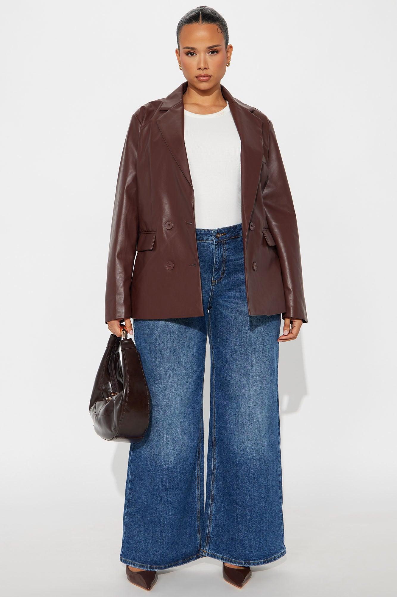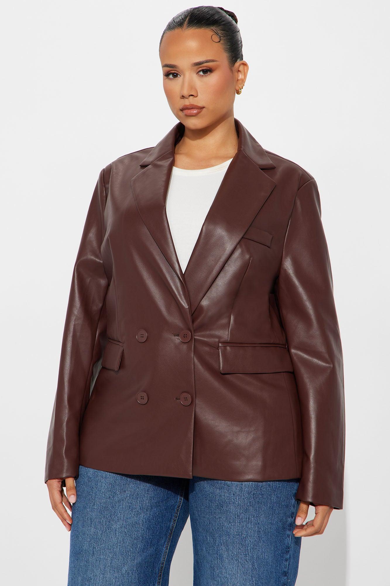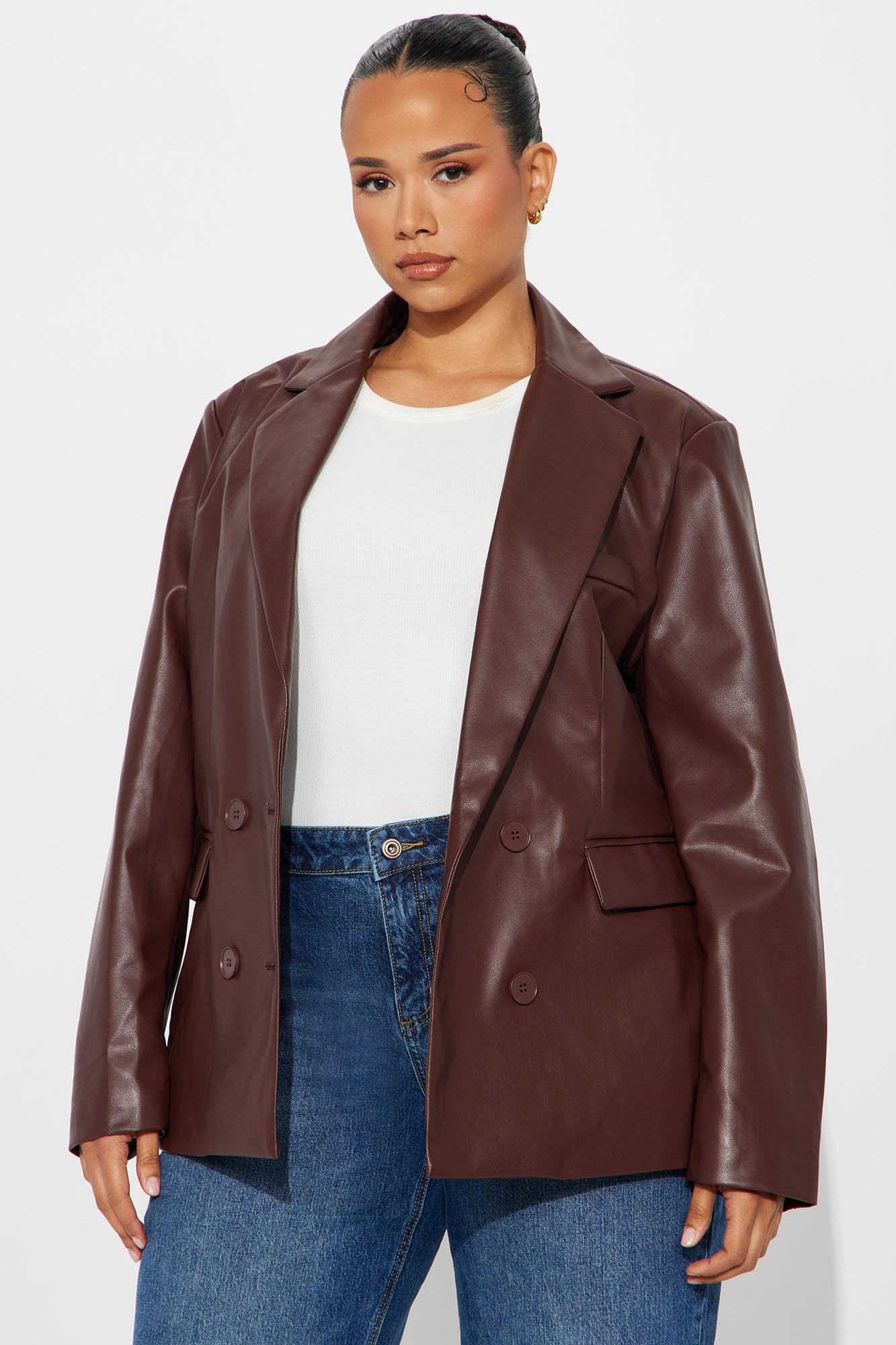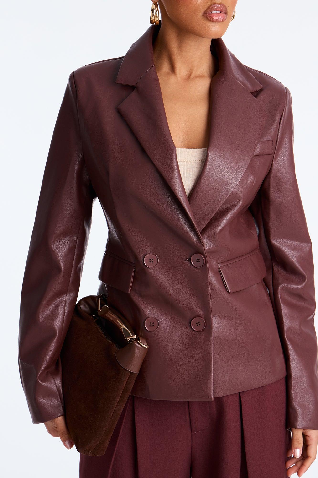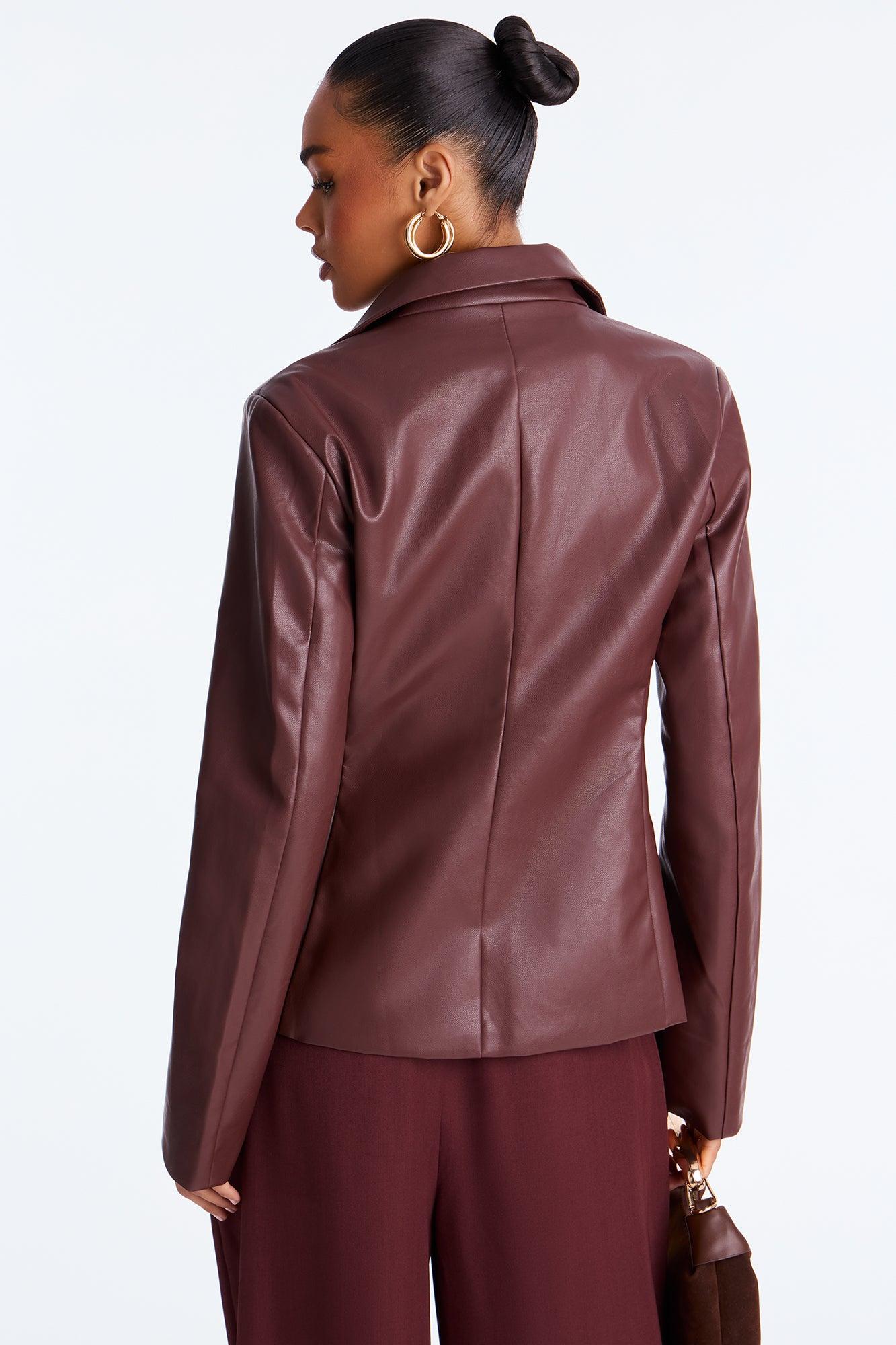 Eren Faux Leather Fitted Blazer - Burgundy Female