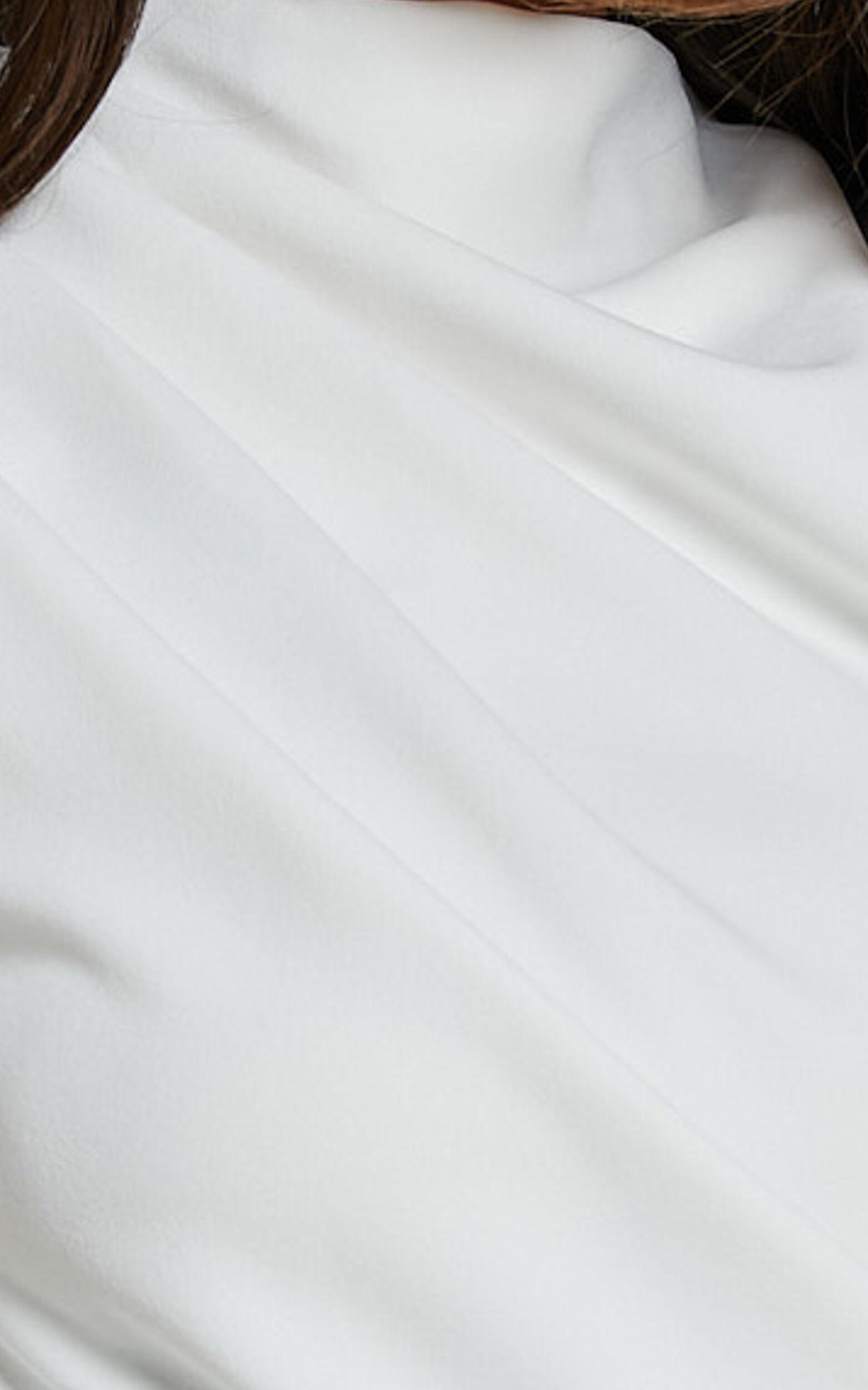 The Erin Top is the perfect addition to your fashion collection. This trendy and fashion-forward high neck tank top features an asymmetric hemline that adds a unique touch to any outfit. Made from jersey crepe fabric, this top is both comfortable and stylish, making it ideal for day or night wear. Whether you're dressing up for work or dressing down for a casual weekend outing, the Erin Top is sure to turn heads. The sleeveless design keeps you cool during those warm summer months, while the white color adds a fresh and clean look to your wardrobe. Pair it with jeans or a skirt for a chic and stylish ensemble that will have everyone asking where you got your fabulous top!Product Details:Zips detailInner liningJersey fabricCowl necklineWorkwear appropriateCrop lengthSleeveless designPolyester materialSize and FitSize S / 8 length: 60cm / 23.62inMaterial and Care100% PolyesterMedium Stretch