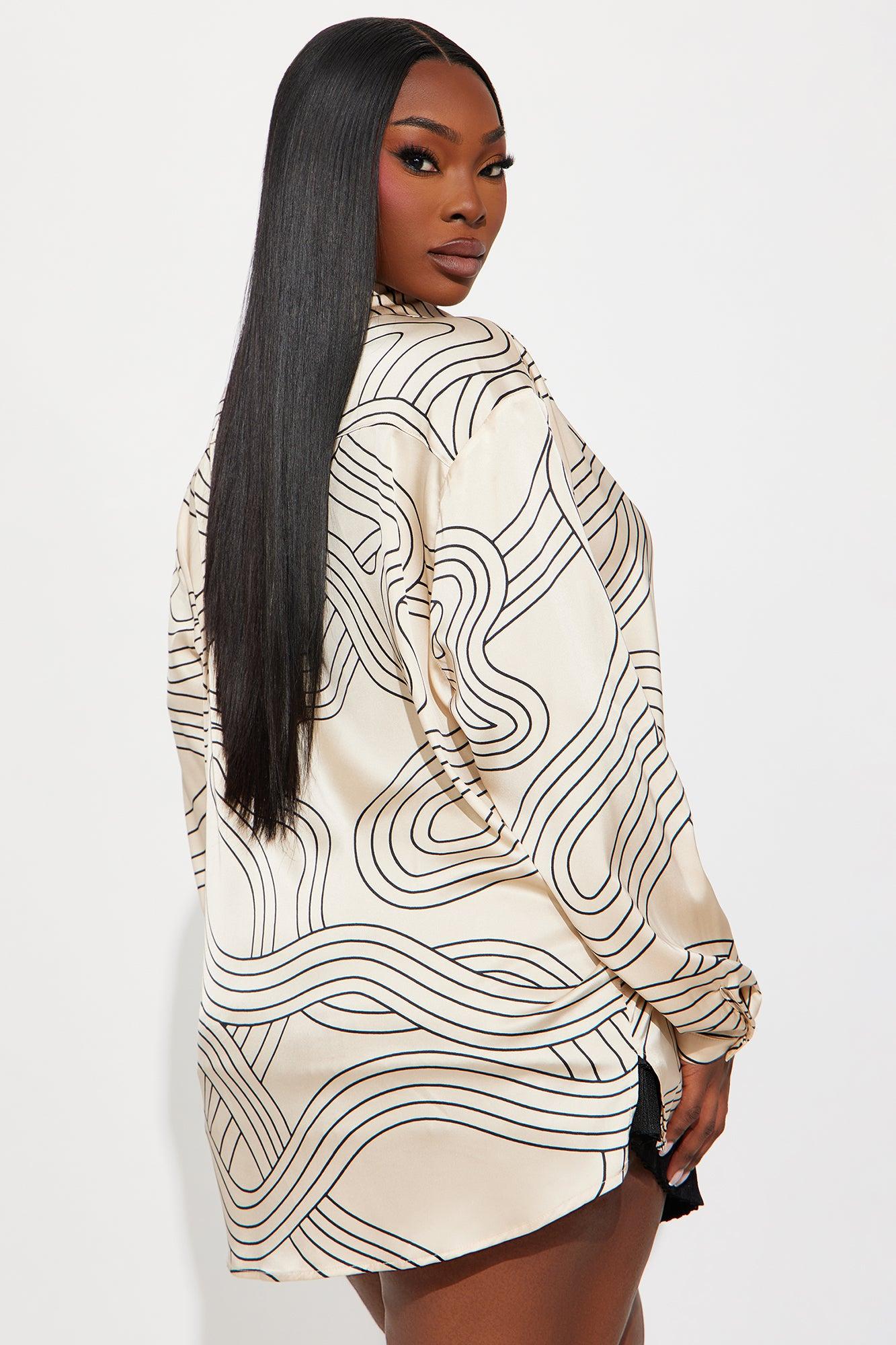Available In Taupe/combo. Oversized Satin Shirt Non Stretch Front Button Disclaimer: Print Placement Will Vary 100% Polyester Imported California Proposition 65WARNING: Cancer and Reproductive Harm - www.P65Warnings.ca.gov.