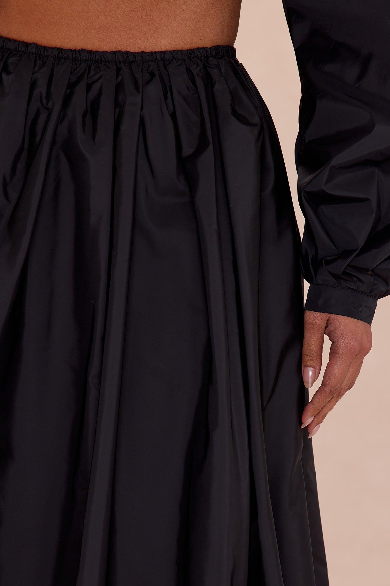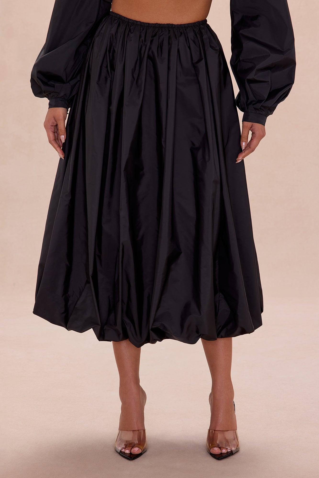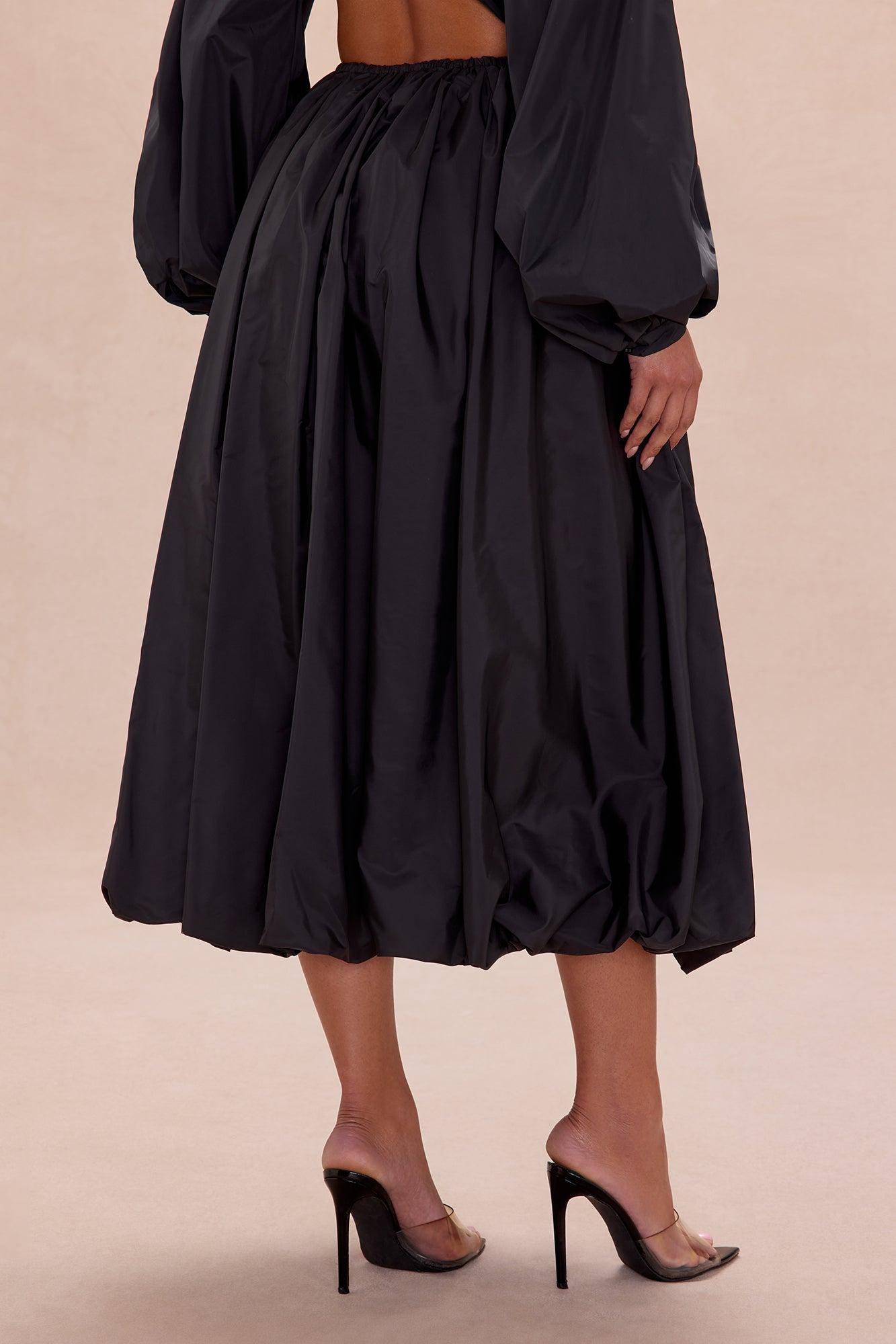 Estelle Bubble Hem Taffeta Midi Skirt - Black Female