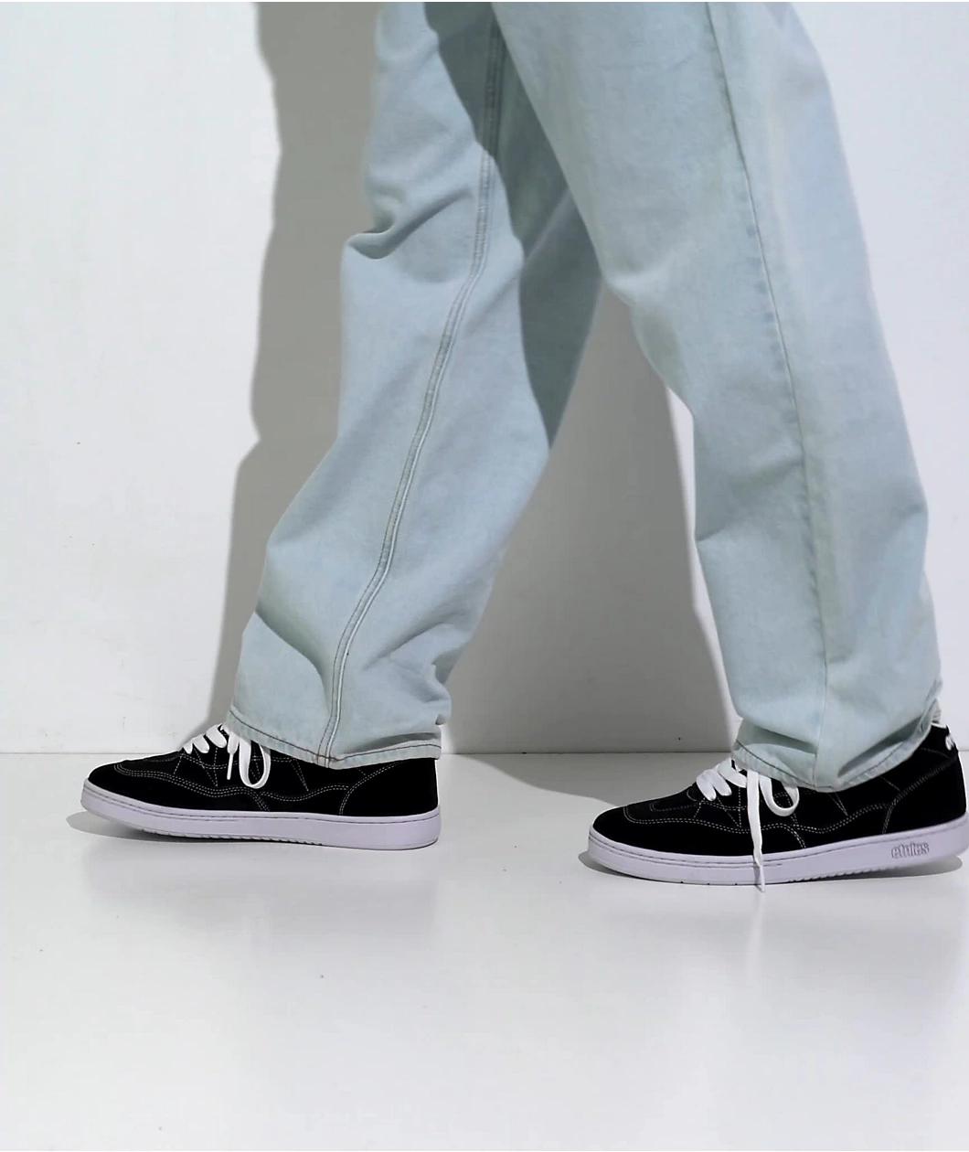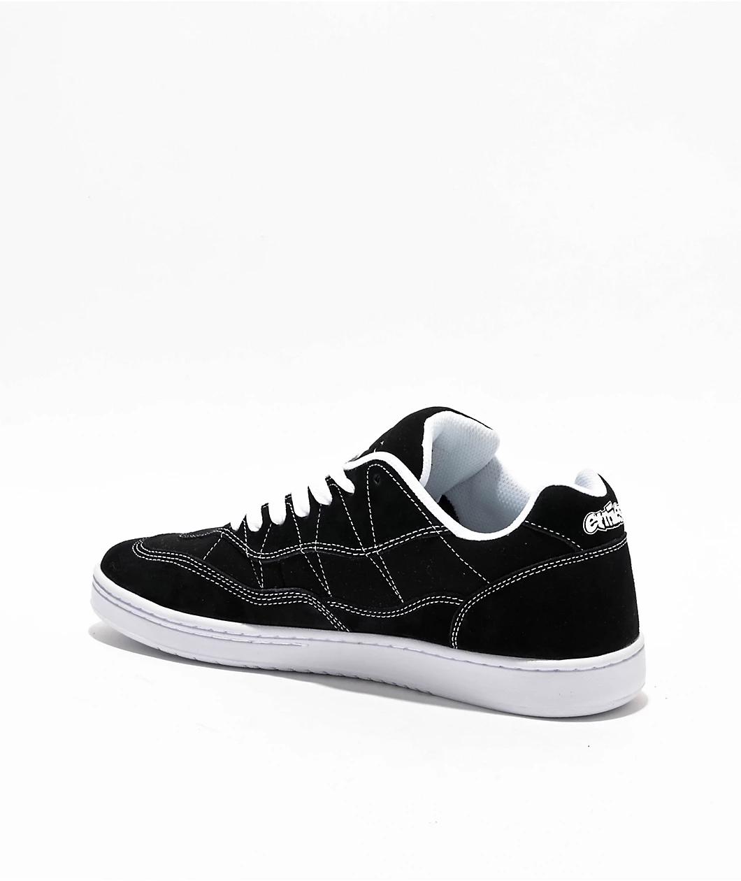 Offered in a black suede construction with white detailing, the reissued Etnies Snake stays true to its original 1996 design. The cupsole skate shoes have been outfitted with STI Level 1 cushioning, a