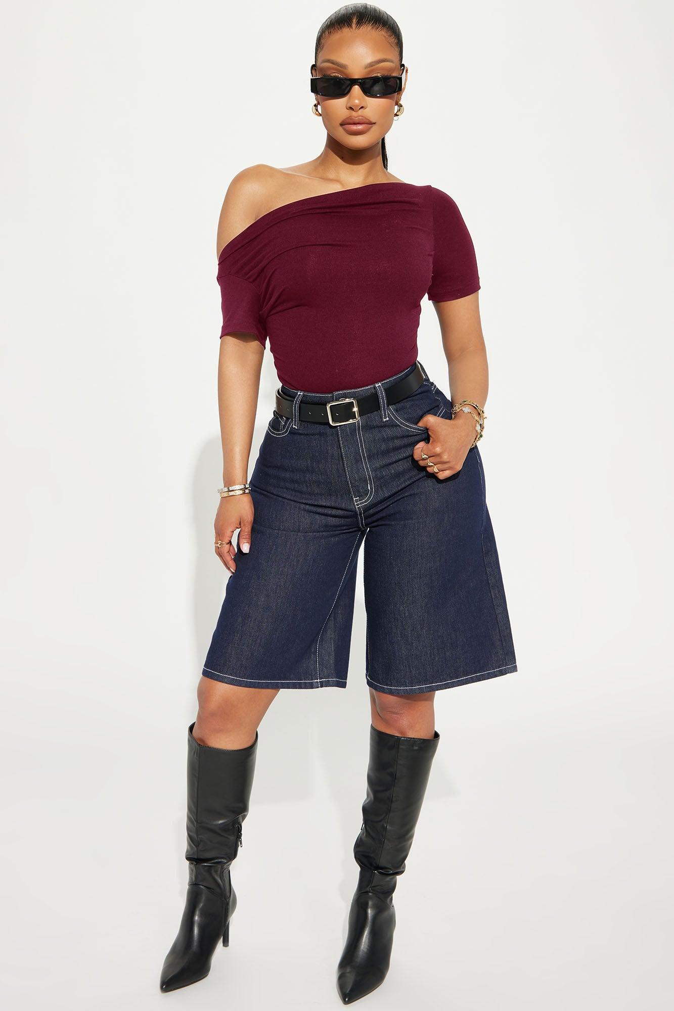 Eva Effortless One Shoulder Top - Burgundy Female
