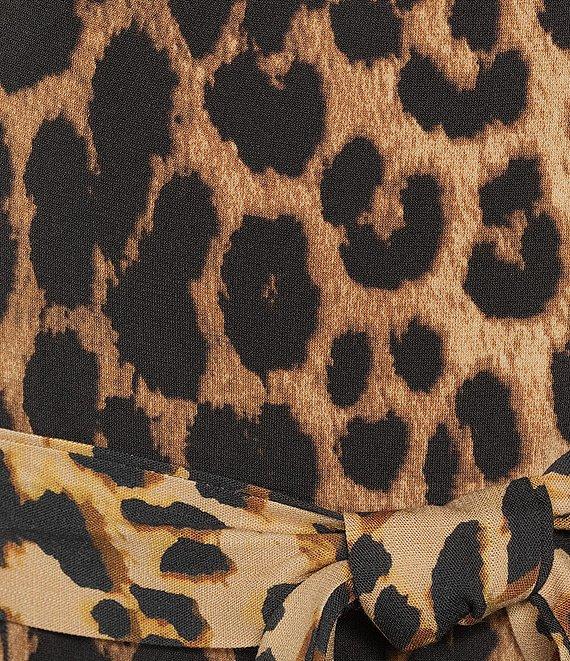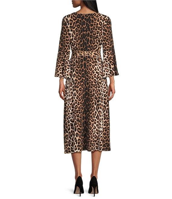 Eva Varro Turn Turn Cheetah Print V-Neck 3/4 Bell Sleeve A-Line Midi Dress