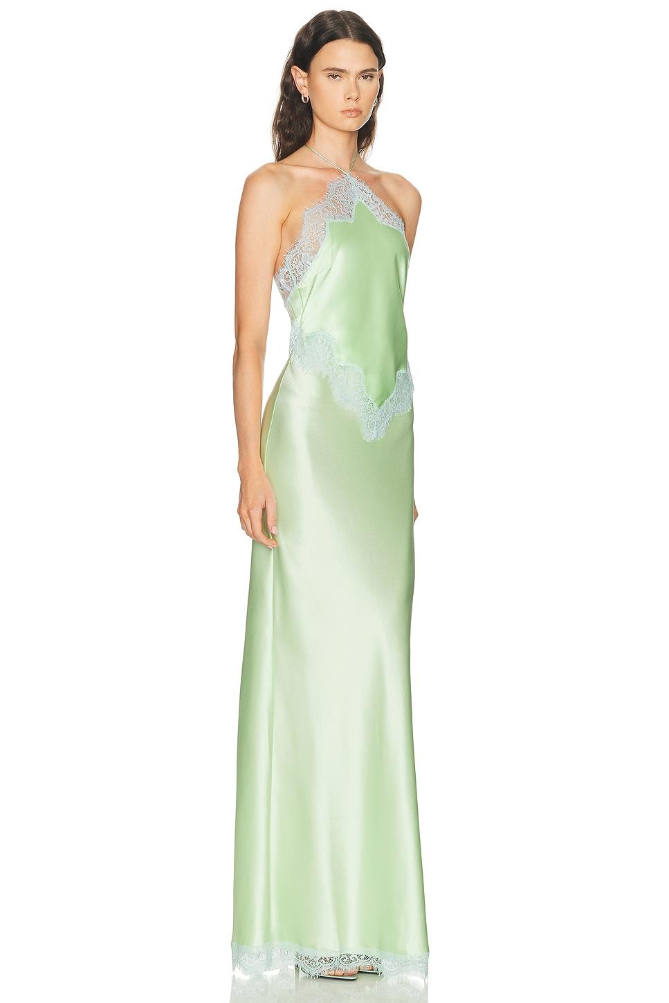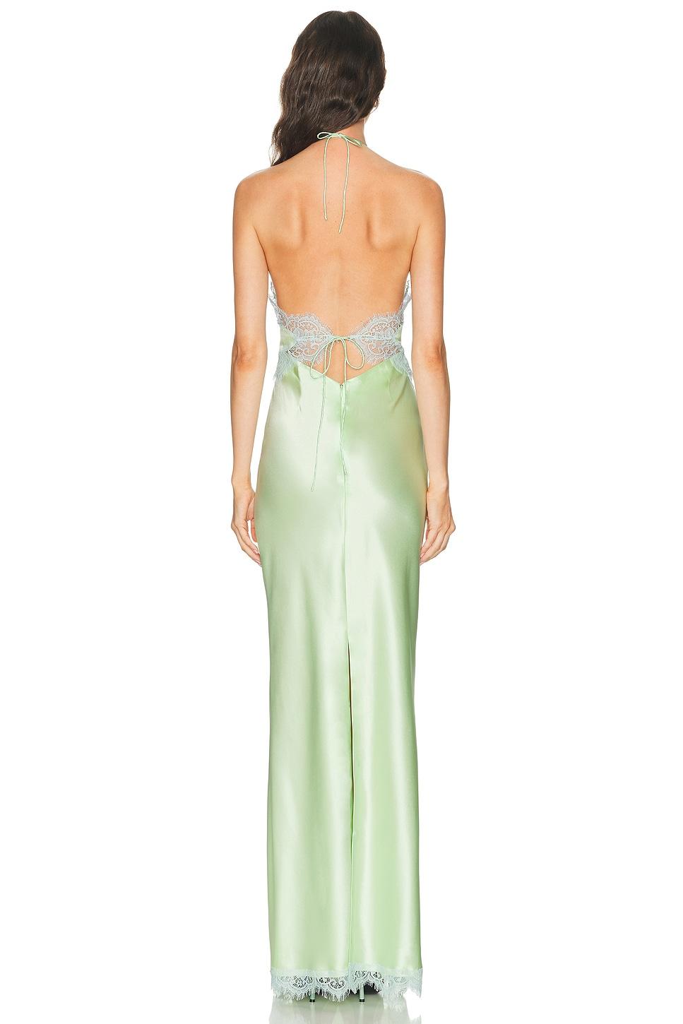 dressSelf: 76% acetate, 24% polyesterLining: 97% polyester, 3% spandexContrast Fabric: 100% nylon / Dry clean only / Partially lined / Hidden back zip with tie closure / Halterneck design with tie closure / Scalloped lace detailing / Heavyweight satin fabric / Made in China / Our Style No. RTFF-WD757 / Manufacturer Style No. R-PF25-11672-17 / Model is wearing size S.