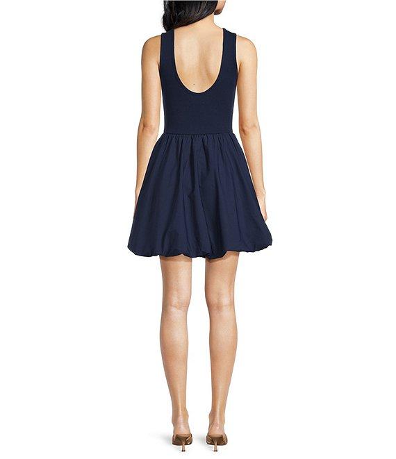 From Every, this dress features: Knit fabrication Drop waist silhouette Scoop neckline Sleeveless Bubble hemline Pullover closure Approx. 33" HPS in length Self-cotton, spandex & contrast- Tencel, cotton Machine wash Imported.