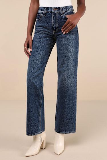 The Just Black Everyday Coolness Dark Wash High-Rise Straight-Leg Jeans are sure to create some of your most stylish OOTDs this season! Sturdy cotton denim shapes these closet-essential jeans with a high-rise fit, complete with belt loops, a five-pocket cut, and a hidden zip fly with a top button closure. Light whiskering and fading accent the relaxed, straight pant legs that finish at full-length hems.