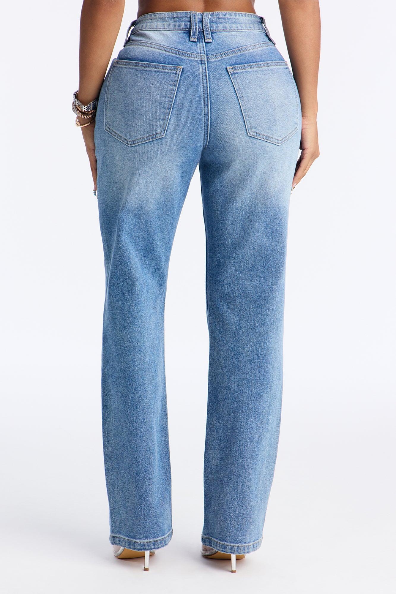 Available In Medium Wash. Straight Leg Jean 5 Pocket 10.5" Rise 32" Inseam Comfort Stretch Disclaimer: Due To The Specialized Wash, Each Garment Is Unique. Self: 99% Cotton 1% Spandex Imported California Proposition 65WARNING: Cancer and Reproductive Harm - www.P65Warnings.ca.gov.
