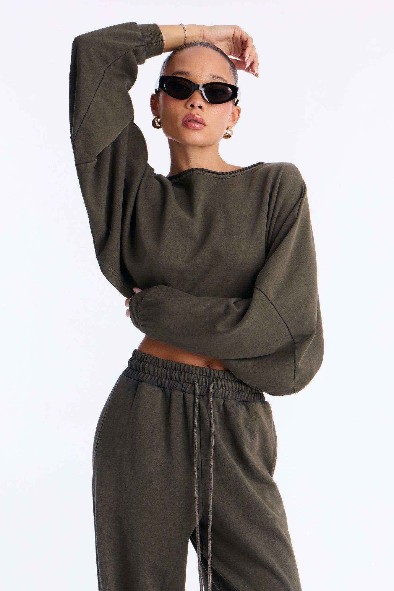 Everyday Vibe Washed Pant Set - Dark Olive Female