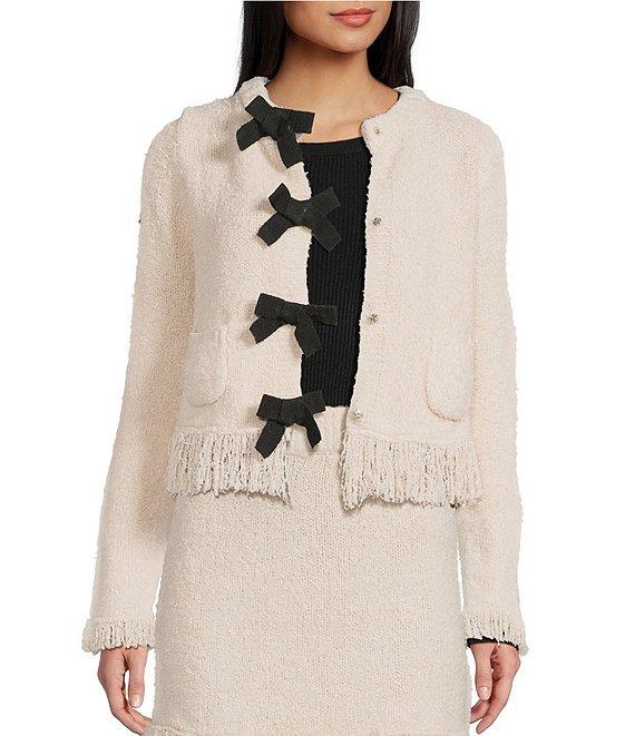 Evolutionary Crew Neck Long Sleeve Bow Front Coordinating Cardigan