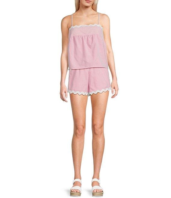 Evolutionary Striped Ricrac Trim Mid Rise Coordinating Pull-On Shorts