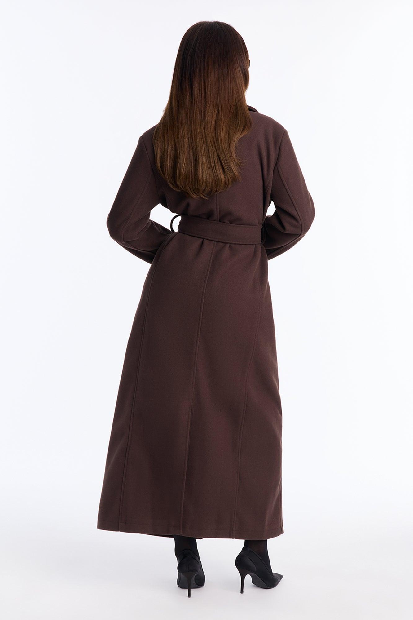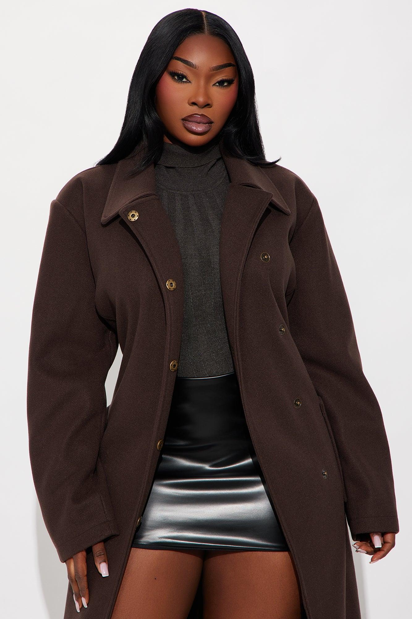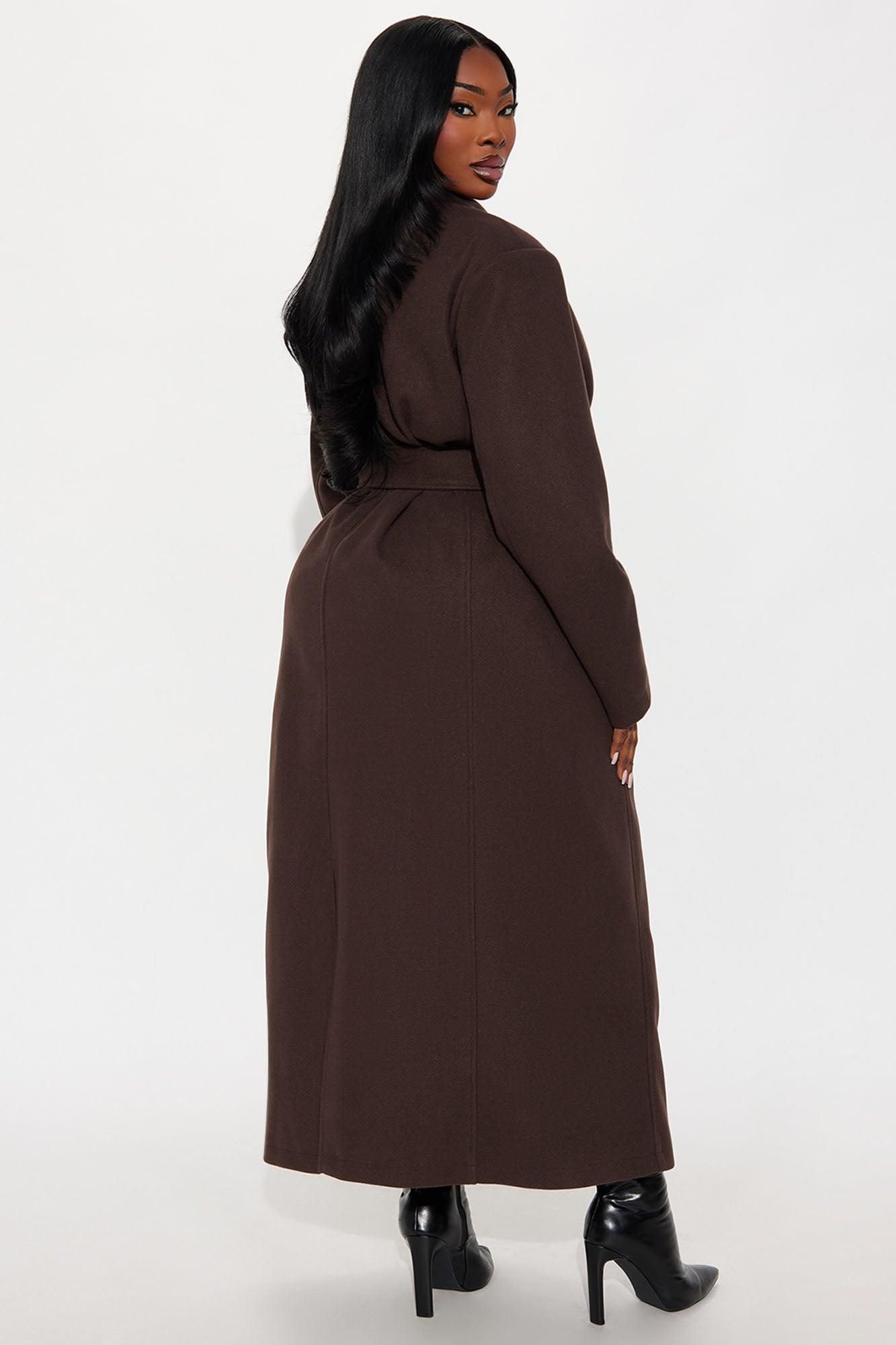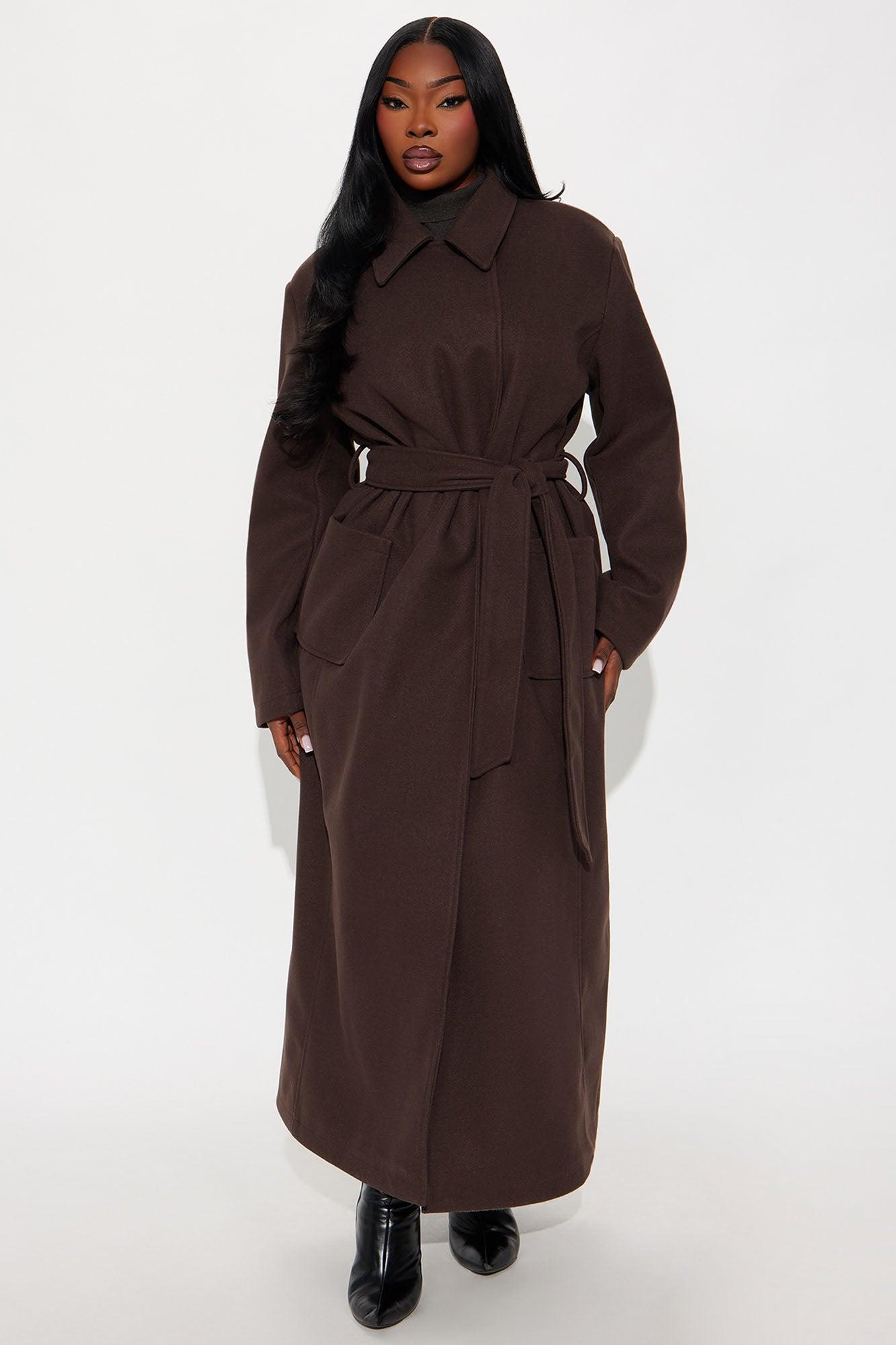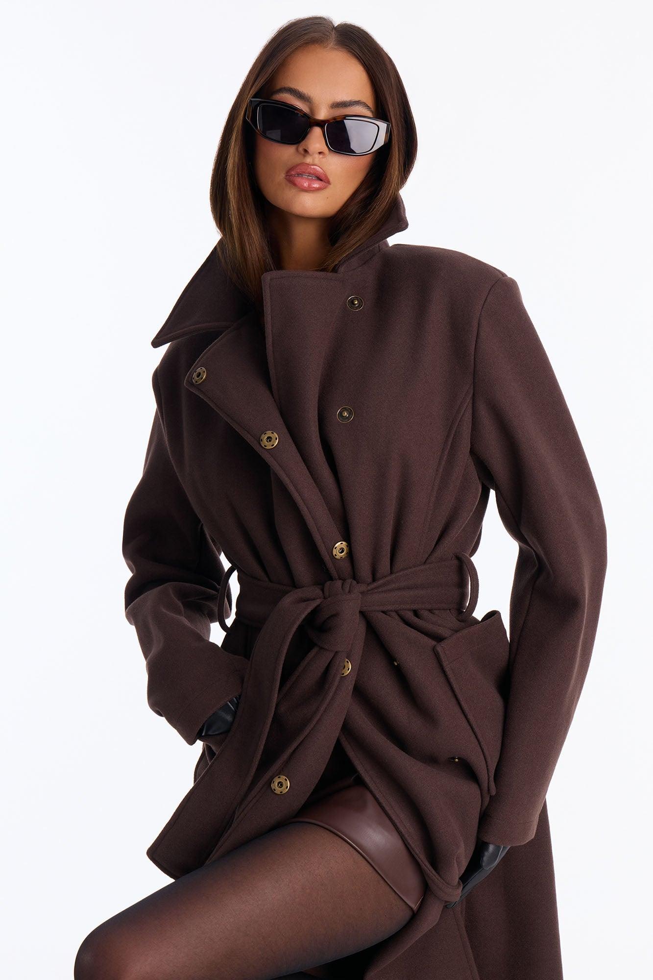Available In Brown And Navy. Coat Collar Neckline Long Sleeves Shoulder Pads Button Closure Belted Pockets Back Slit Fully Lined Self/Lining: 100% Polyester Imported California Proposition 65WARNING: Cancer and Reproductive Harm - www.P65Warnings.ca.gov.