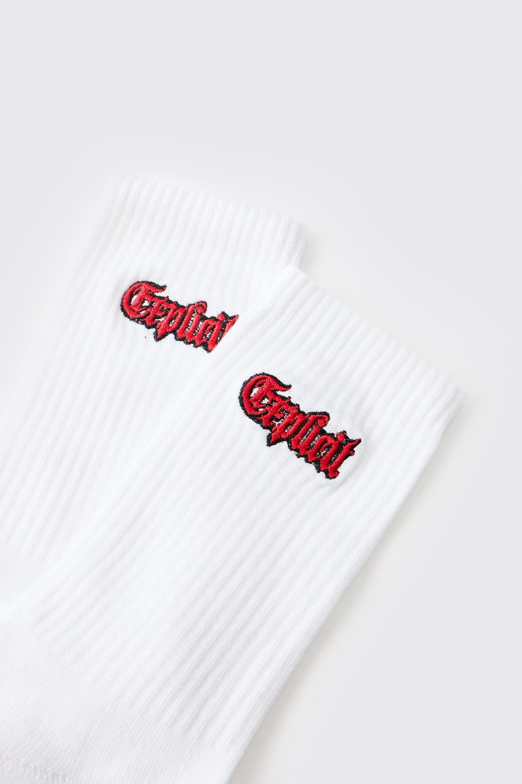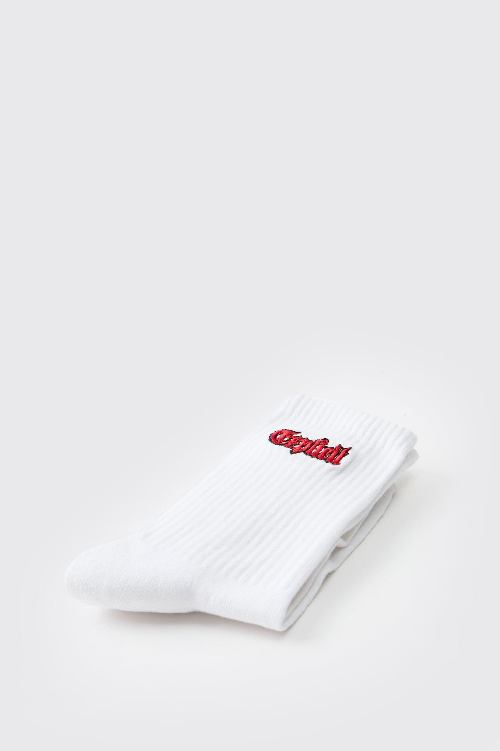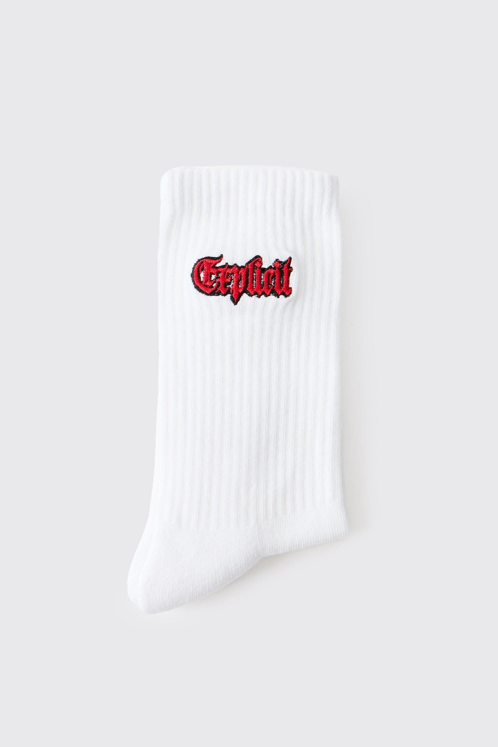 Explicit Embroidered Half Terry Socks | boohooMAN USA