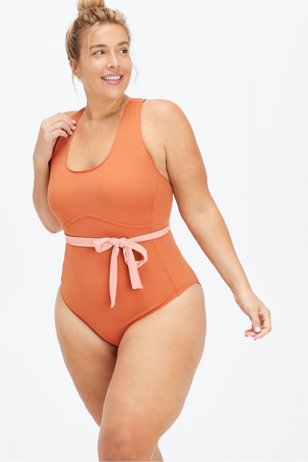 Fabletics Lace-Up Racerback Swimsuit Womens Sequoia/Pink Tint plus Size 4X
