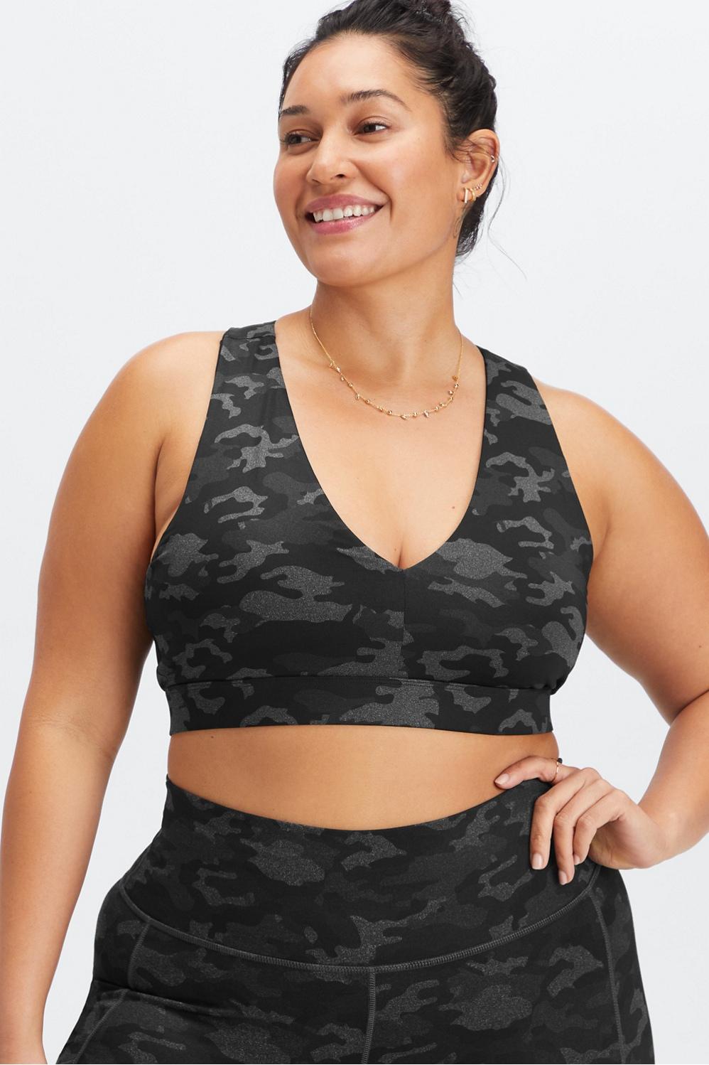 Fabletics On-The-Go Midi Medium Impact Sports Bra Womens Charcoal Camo Size XS