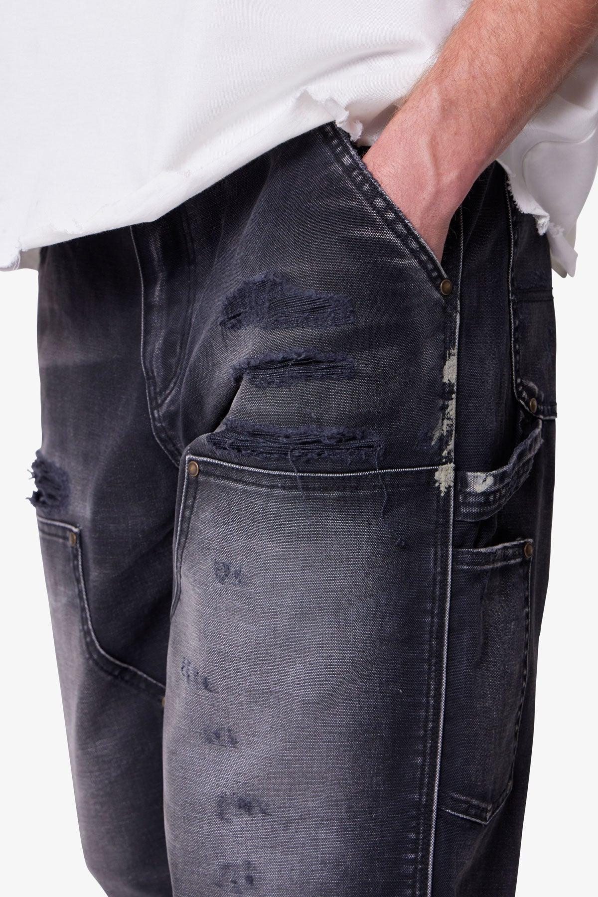 Made from 100% cotton canvas with a vintage wash, the Faded Distressed Carpenter Pants feature a baggy fit with double knee workwear detailing. Designed with heavy distressing and sanding for a worn, vintage appearance. details Baggy fit 100% cotton canvas Vintage wash Double knee workwear detail Heavy distressing and