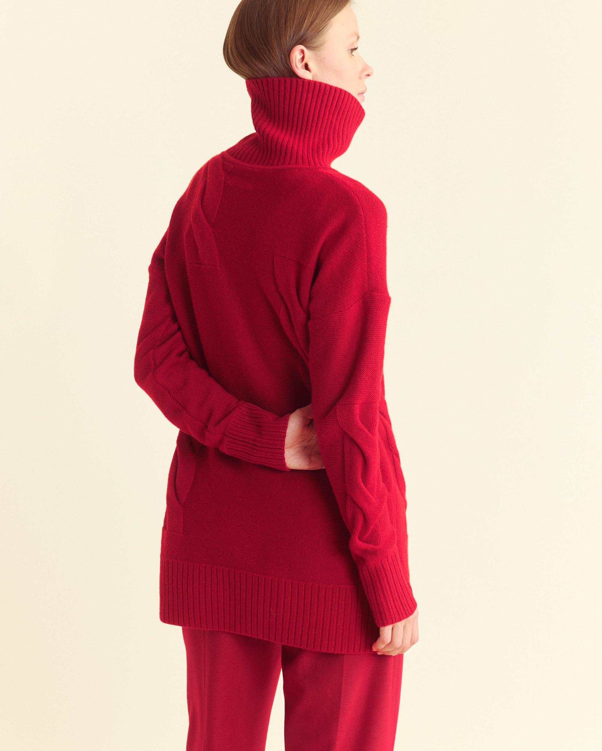 Fading Cable Sweater with high funnel neck, deep rib cuff, and modern cable knit design. 7GG weight, ideal layered or worn alone.