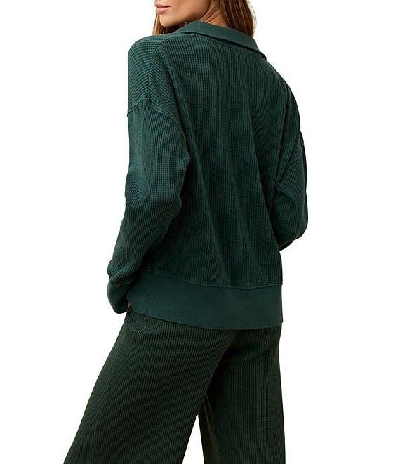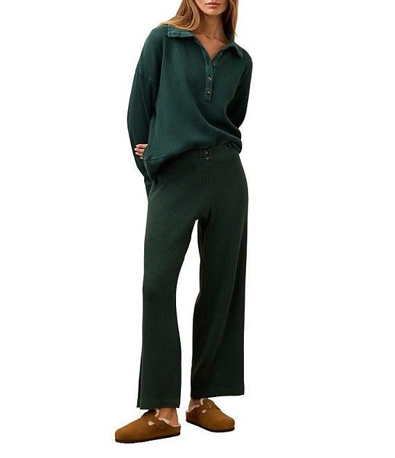 Faherty Apres Coordinating Waffle Knit V-Neck Long Sleeve Henley Top