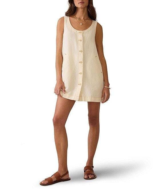 From Faherty, this dress features: Lightweight woven fabrication A-line silhouette V-neckline Sleeveless Functional welt pockets Button front closure Approx. 33" in length Organic cotton/linen Close all fastening then machine wash and tumble dry on low Imported.