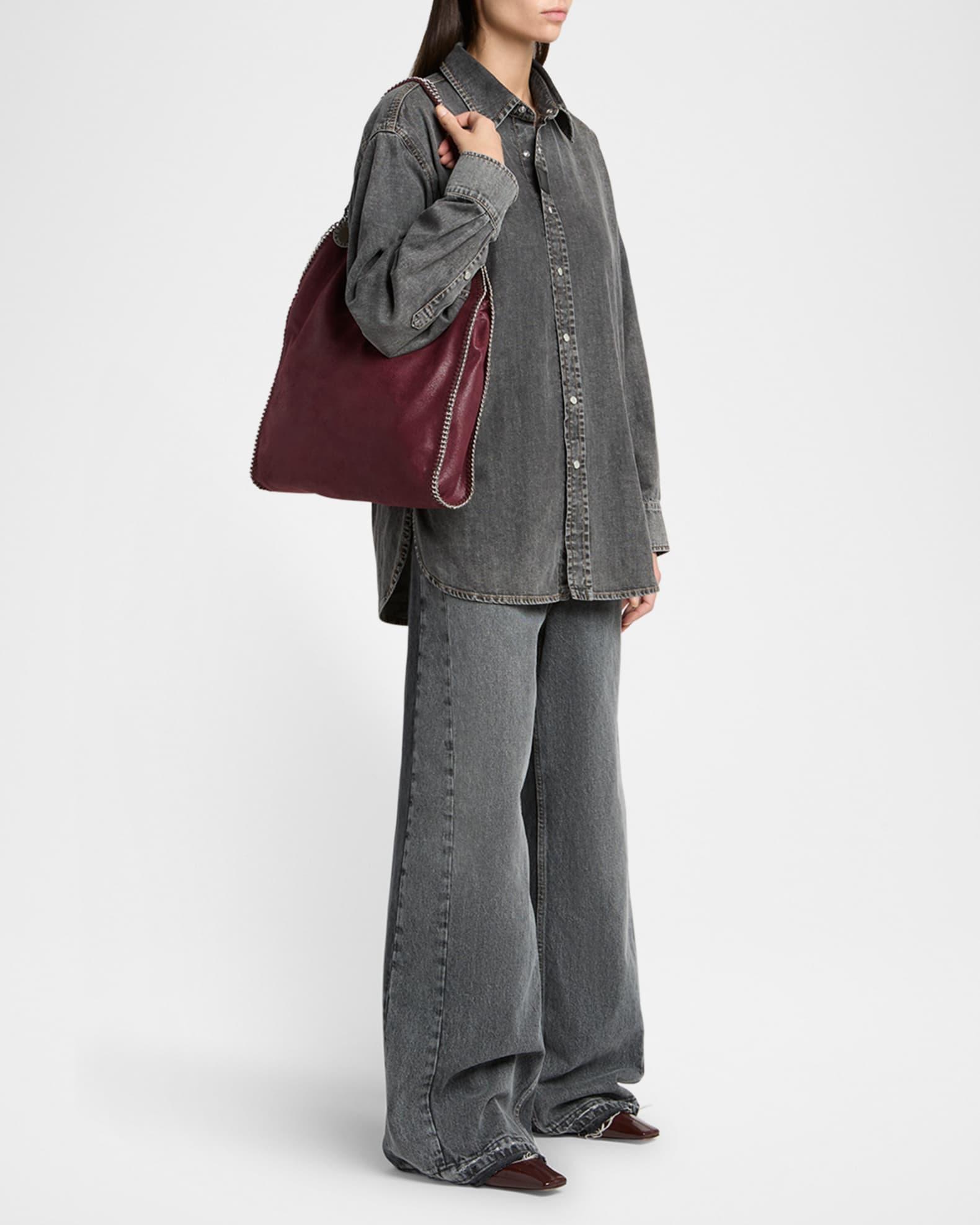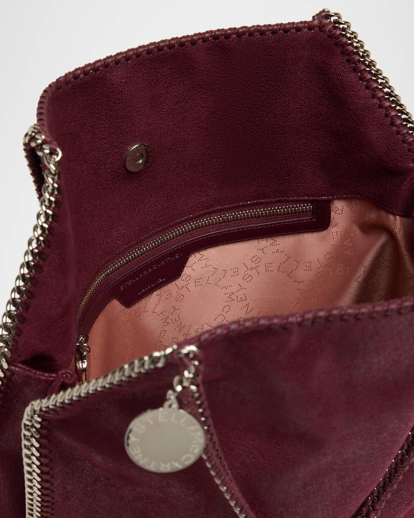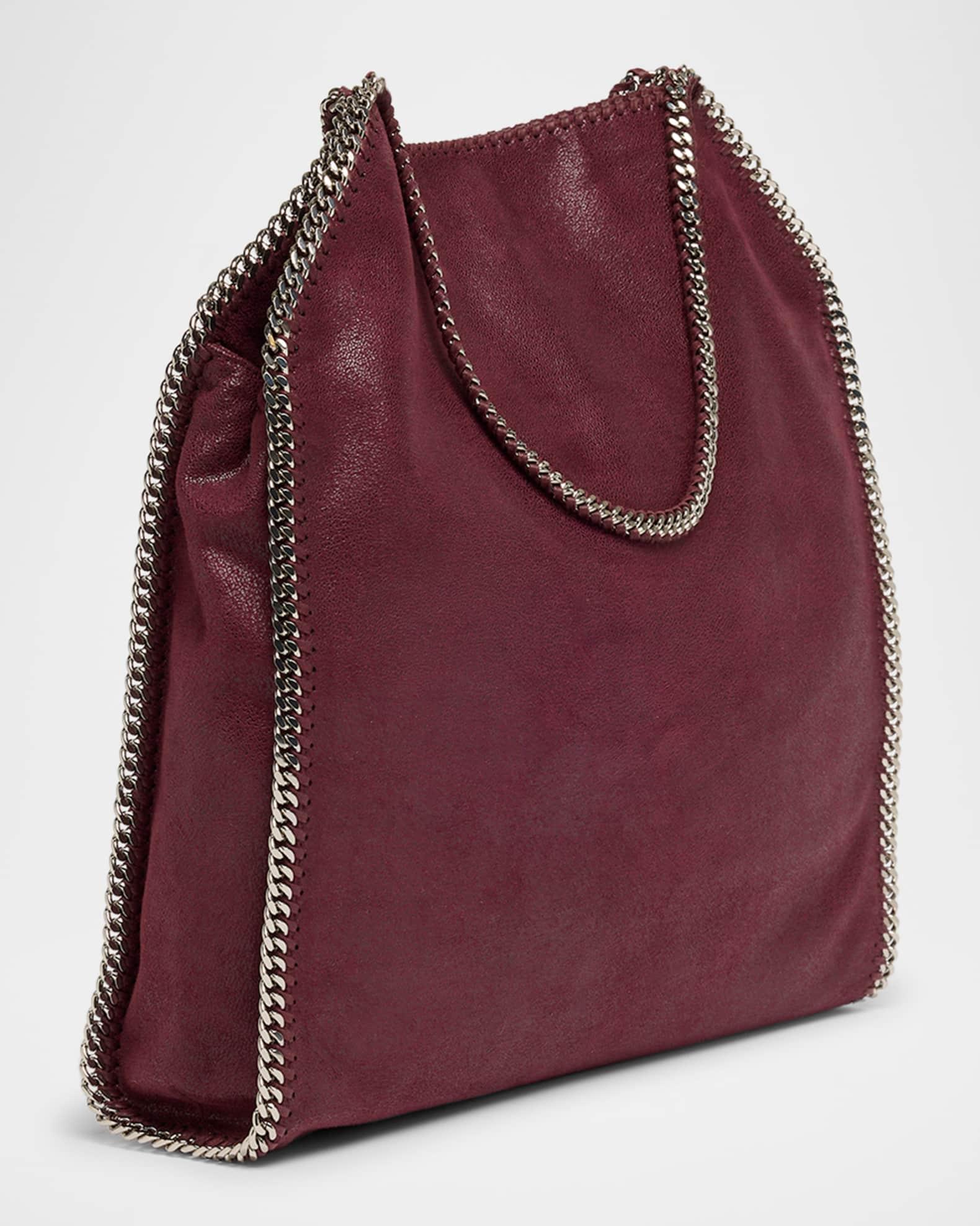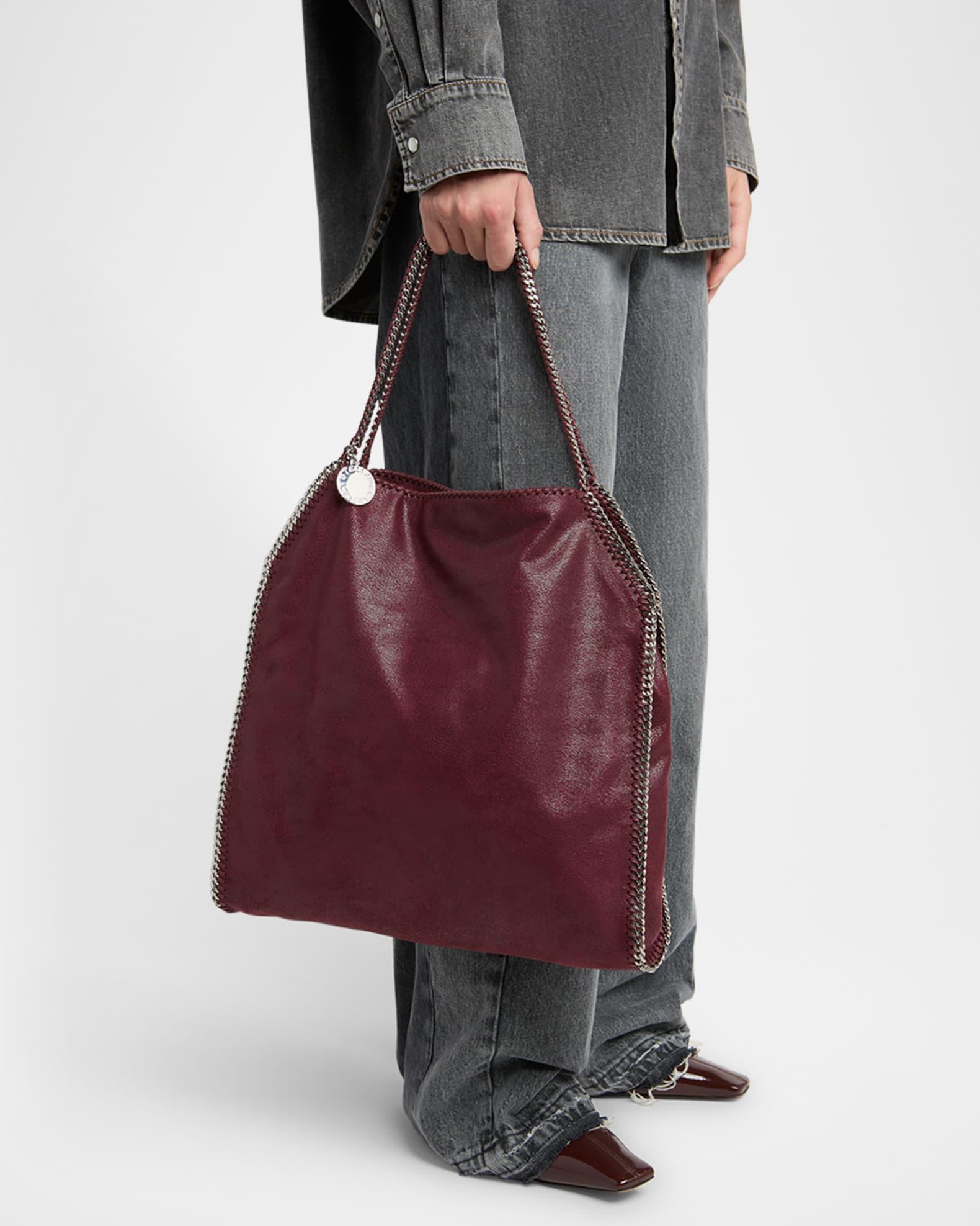 Stella McCartney "Falabella" tote bag in eco-shaggy deer vegan leather and fabric Signature whipstitching and chain curb-chain trim Chain shoulder straps with logo charm Open top with snap closure Interior, one zip pocket Approx. 15.7"H x 15"W x 3.1"D Polyester Made in Italy