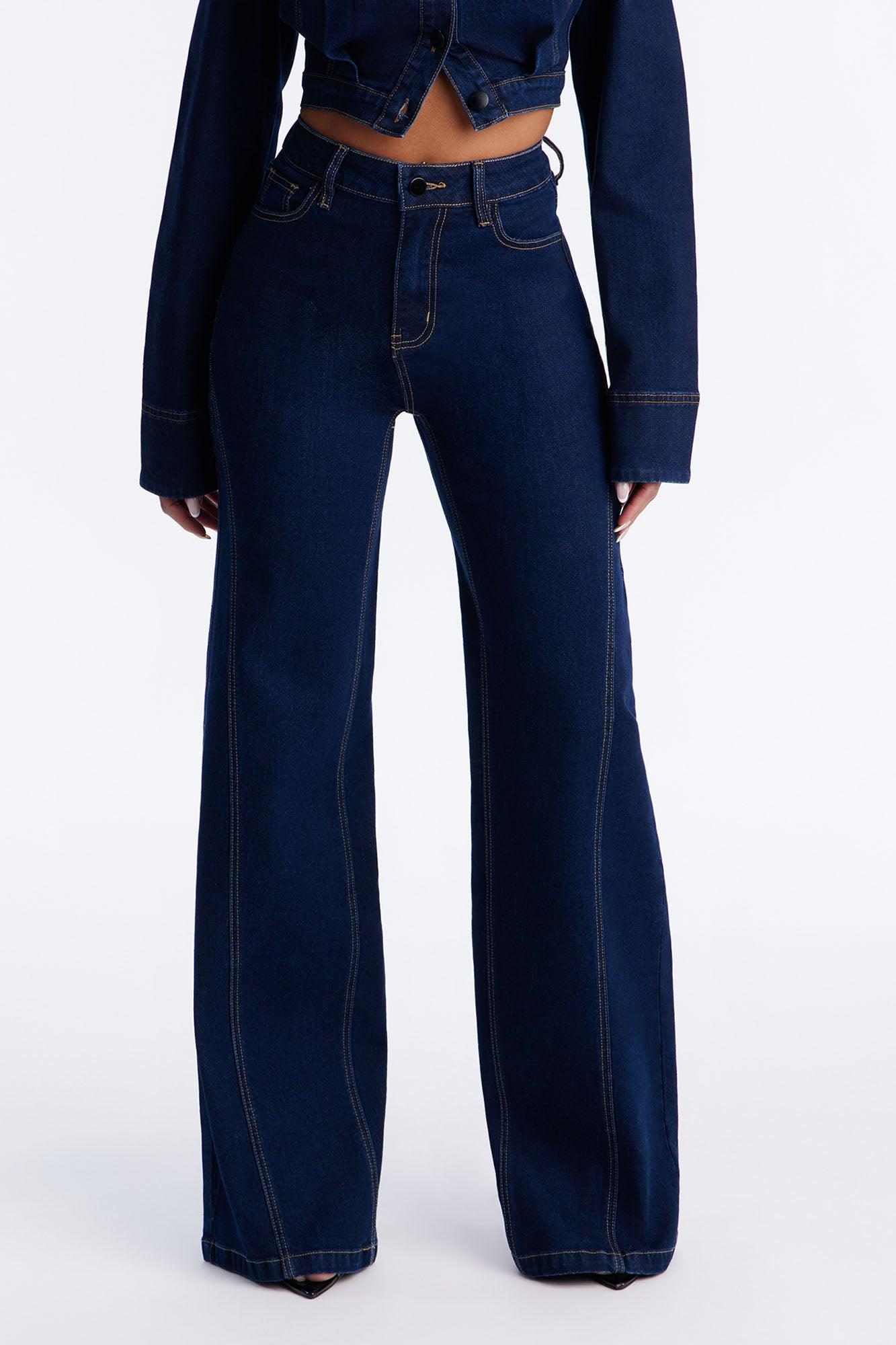 Fame And Fortune Wide Leg Jeans - Dark Wash Female