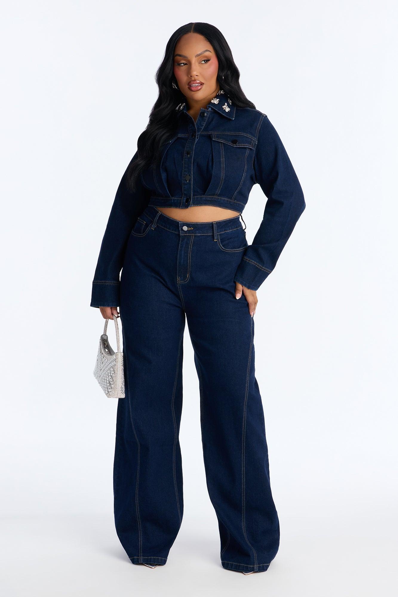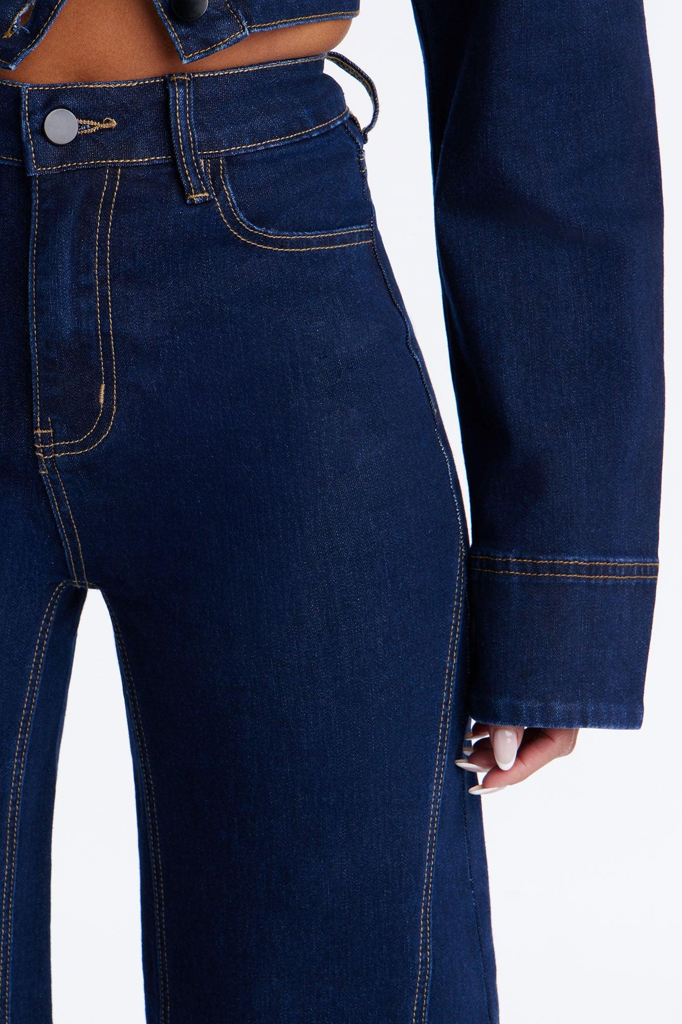 Available In Dark Wash. Pair With Fame And Fortune Embellished Denim Jacket Wide Leg Jean Seaming Details 5 Pocket Detail Front Zipper And Button Closure 11" Rise 35" Inseam Low Stretch 93% Cotton 5% Viscose 2% Spandex Imported