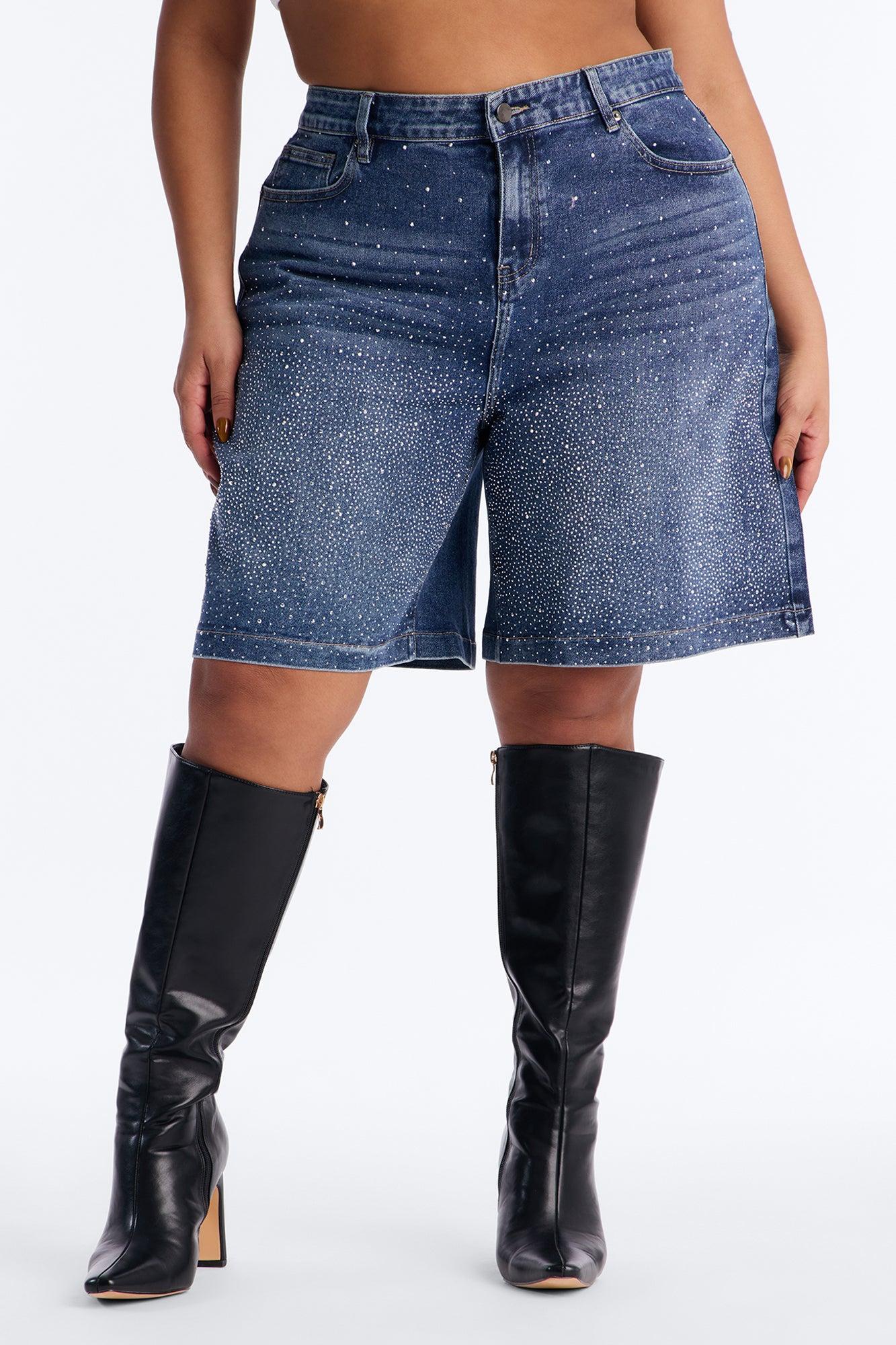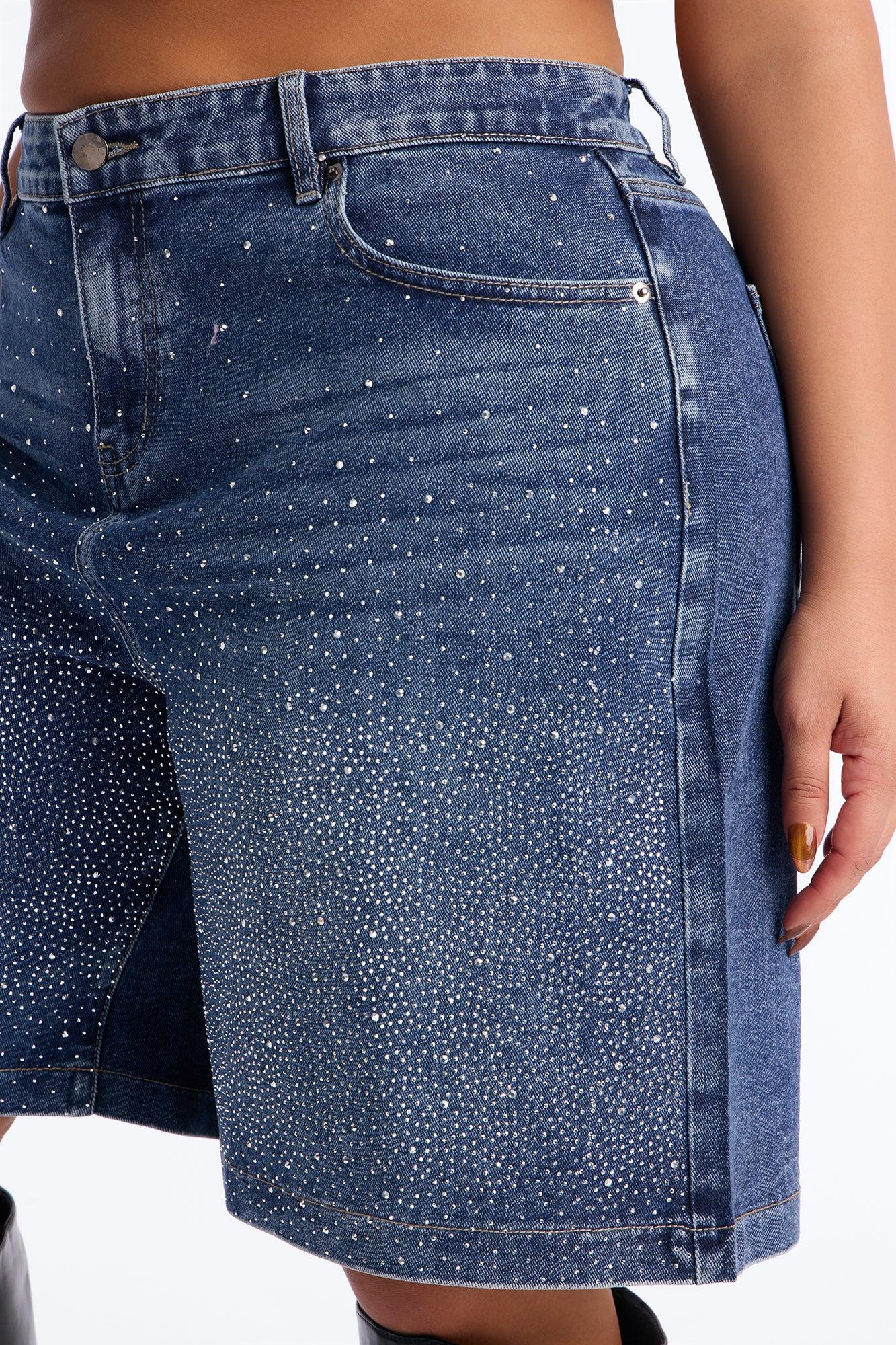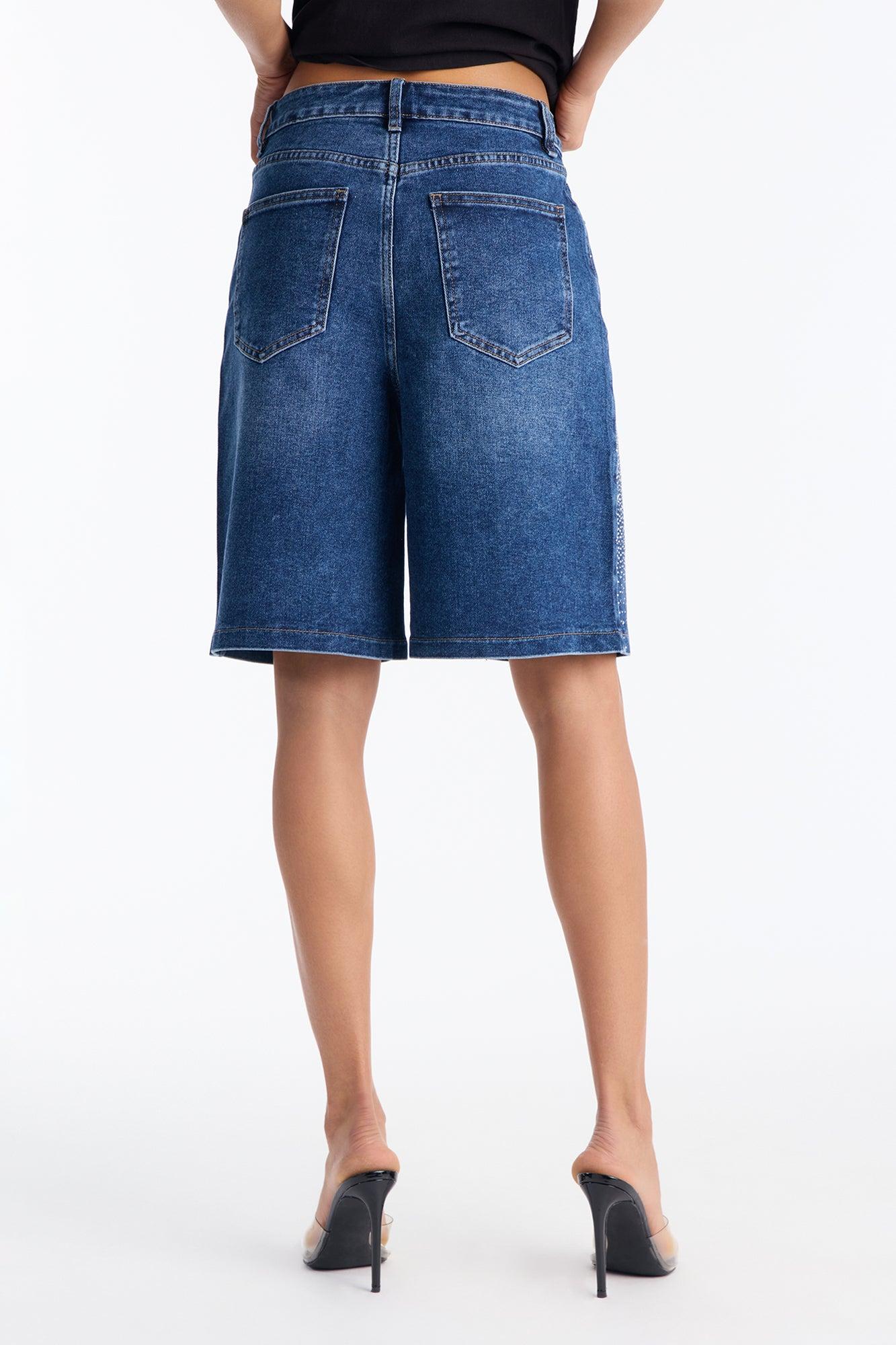 Fancy Pants Embellished Rhinestones Denim Shorts - Dark Wash Female