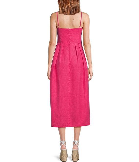 From Fanm Mon, this dress features:Sheath silhouette with pleated front skirt Strapless neckline with white full bloom rose embroidered detail Side slip pockets Hidden and optional spaghetti shoulder straps UnlinedConcealed back zipper Approx. 50" lengthLinenDry clean or hand washImported.