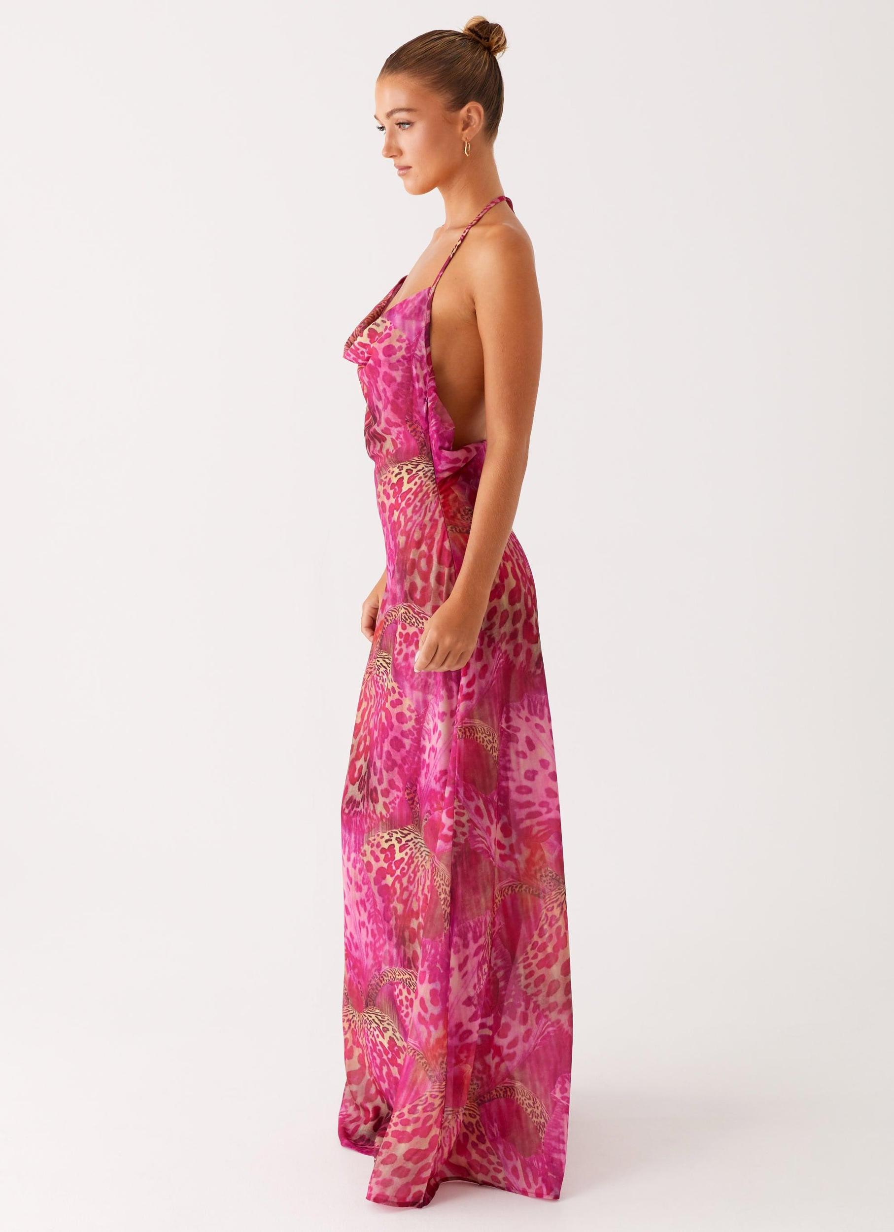 Peppermayo ExclusiveThe Fantasy Maxi Dress features a stunning low front cowl neckline that flows into a sultry low back, creating a dramatic and elegant silhouette. The perfect combination of sensuality and sophistication, this dress is designed to make a bold statement at your next event.- Maxi length - Low front cowl neckline - Thin neck tie - Low back - Side hook and eye, invisible zipper - Chiffon material - Fully lined - Exclusive print - Print placement will differ per garment - 100% polyester - Lining: 95% polyester, 5% spandexSize AU 8 / US 4 garment measurements:Bust: 84 cm / 33.07 inchesWaist: 72 cm / 28.35 inchesHip: 96 cm / 37.80 inchesHem: 200 cm / 78.74 inchesLength: 142 cm / 55.91 inchesYasmin is 174cm and wearing a size AU 6 / and US 2