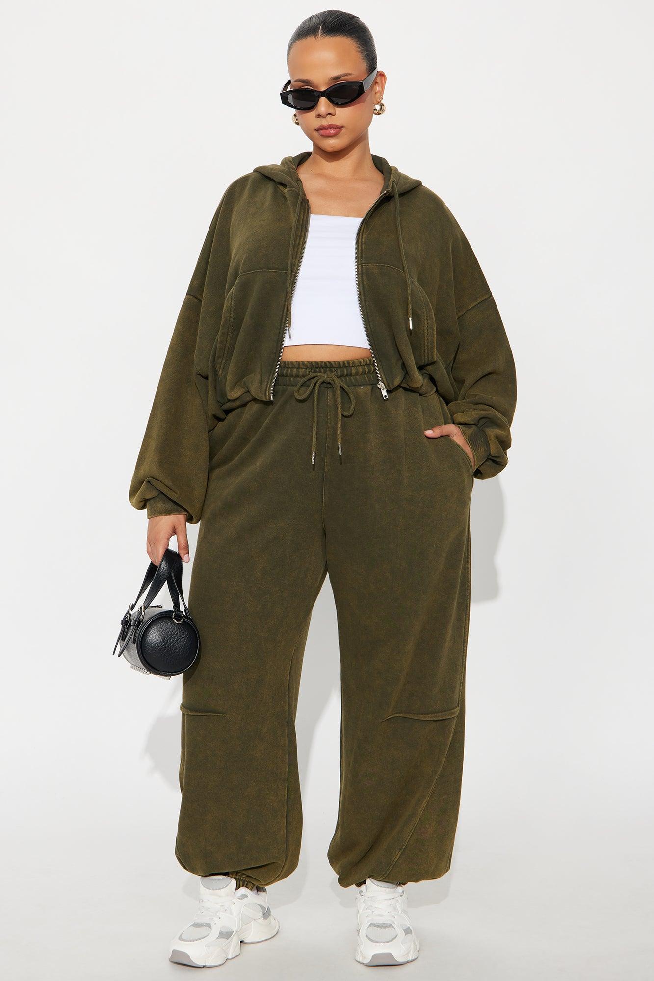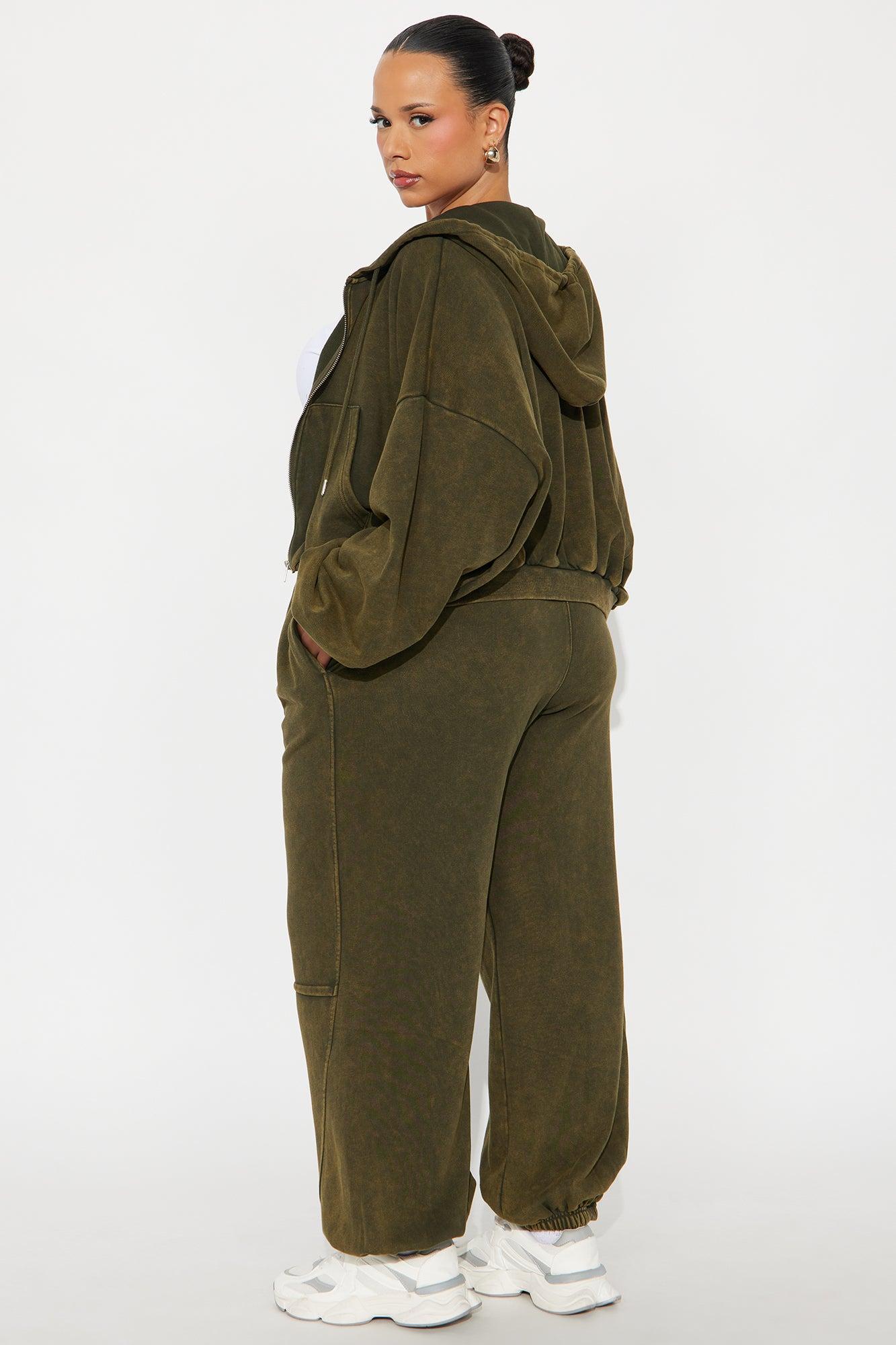 Available In Olive. 2 Piece Ensemble Zip Up Hoodie And Jogger Pant Set Stretch Inseam 32" Elastic Drawstring Waistband On Pant Pockets Disclaimer: Due To The Specialized Wash, Each Garment Is Unique. Self: 85% Cotton 15% Polyester Imported