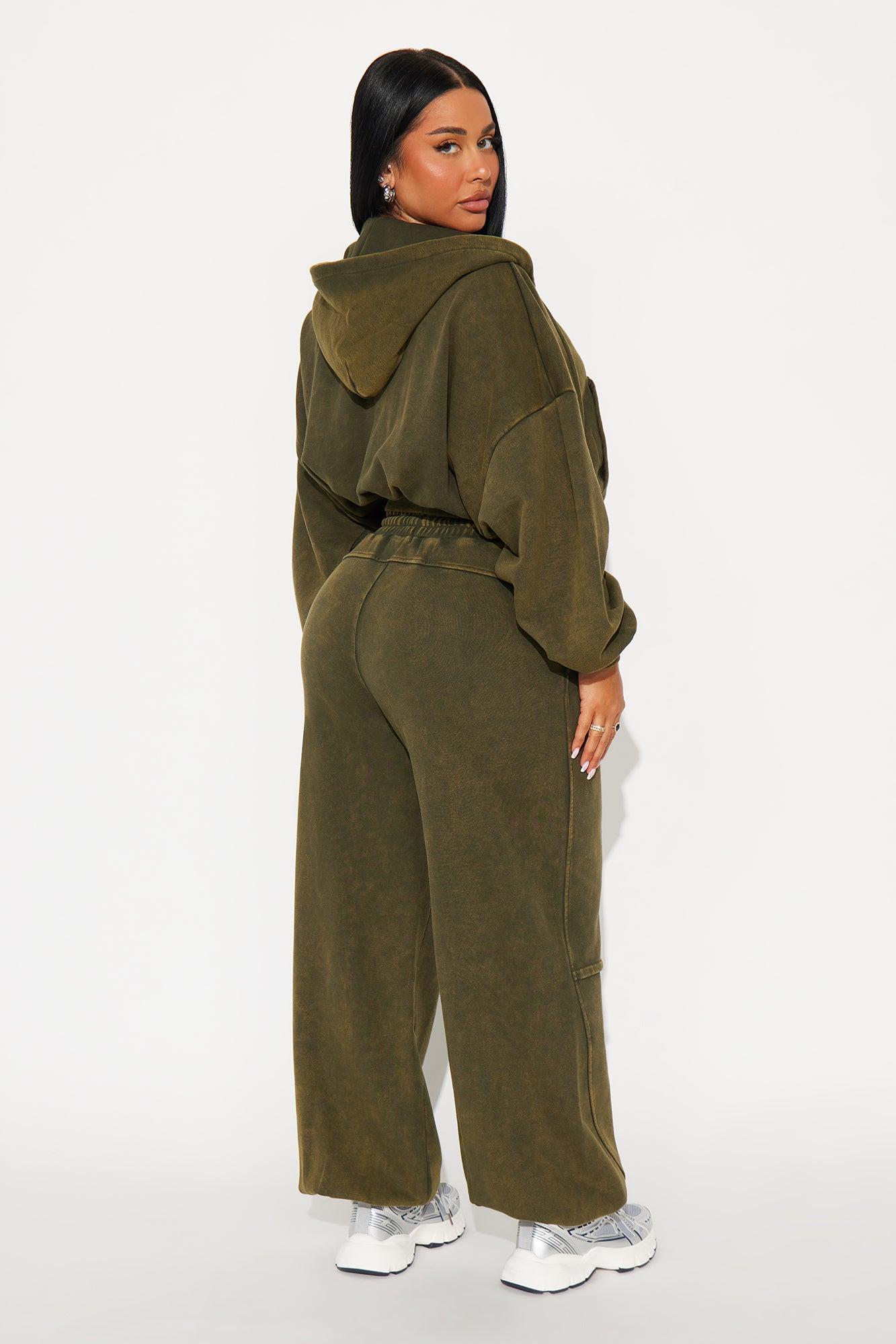 Farah Bubble Hem Washed Hoodie Jogger Set - Olive Female