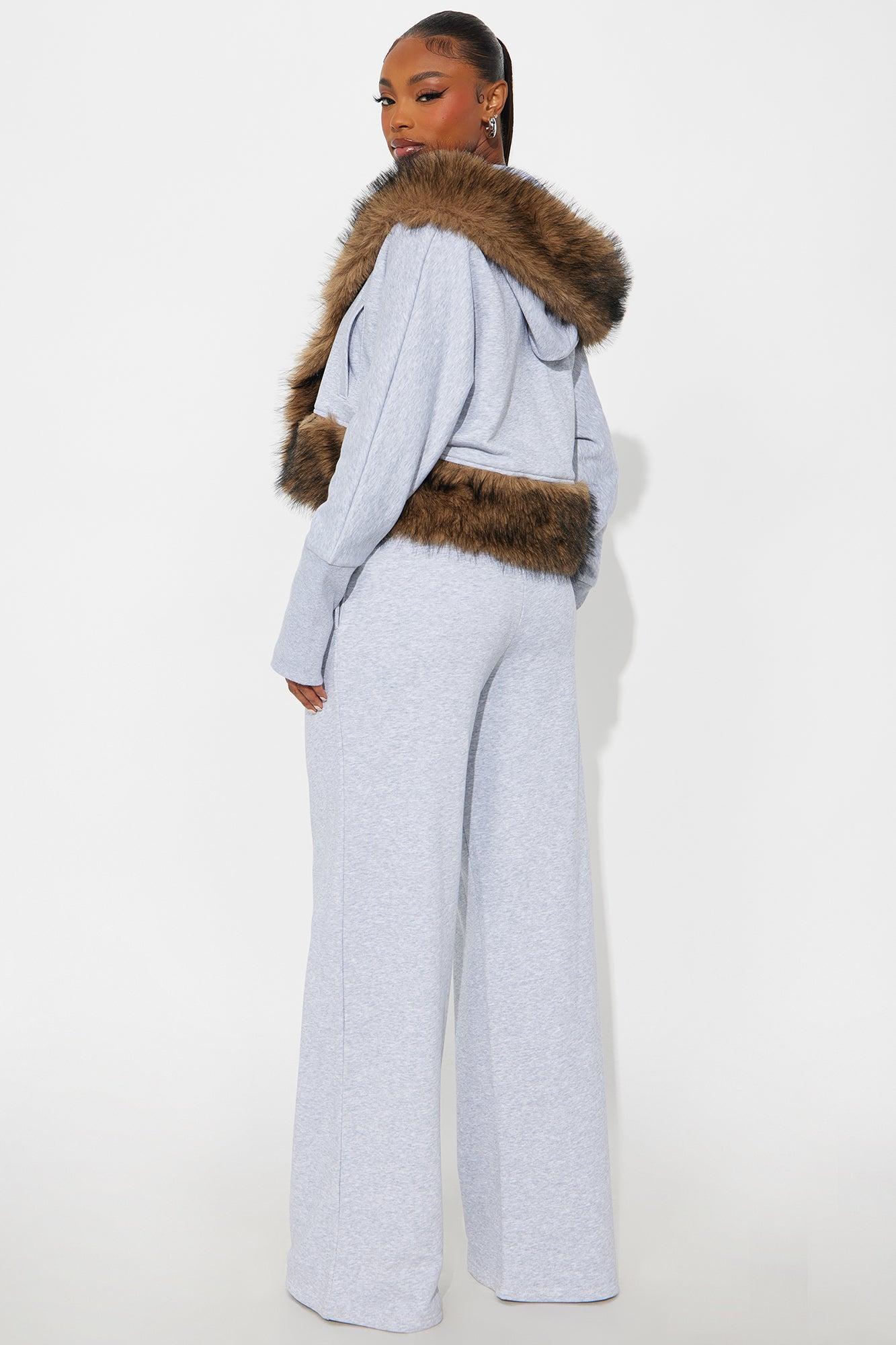 Farina Faux Fur Pant Set - Grey Female