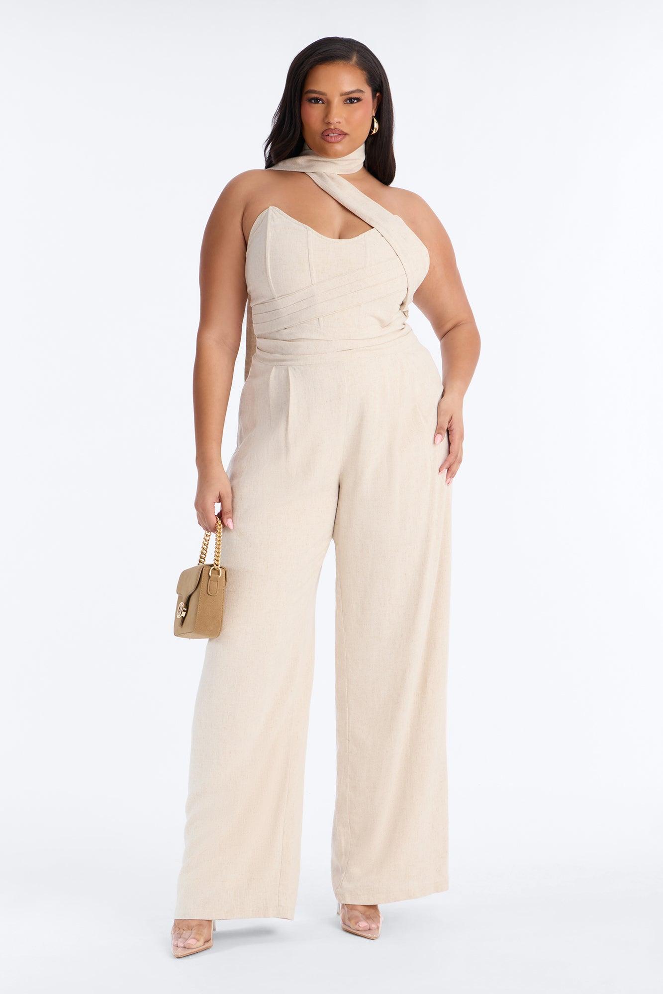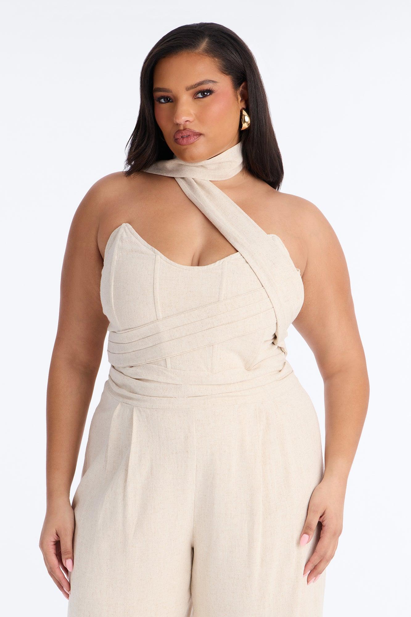 Fatima Linen Corset Jumpsuit - Oatmeal