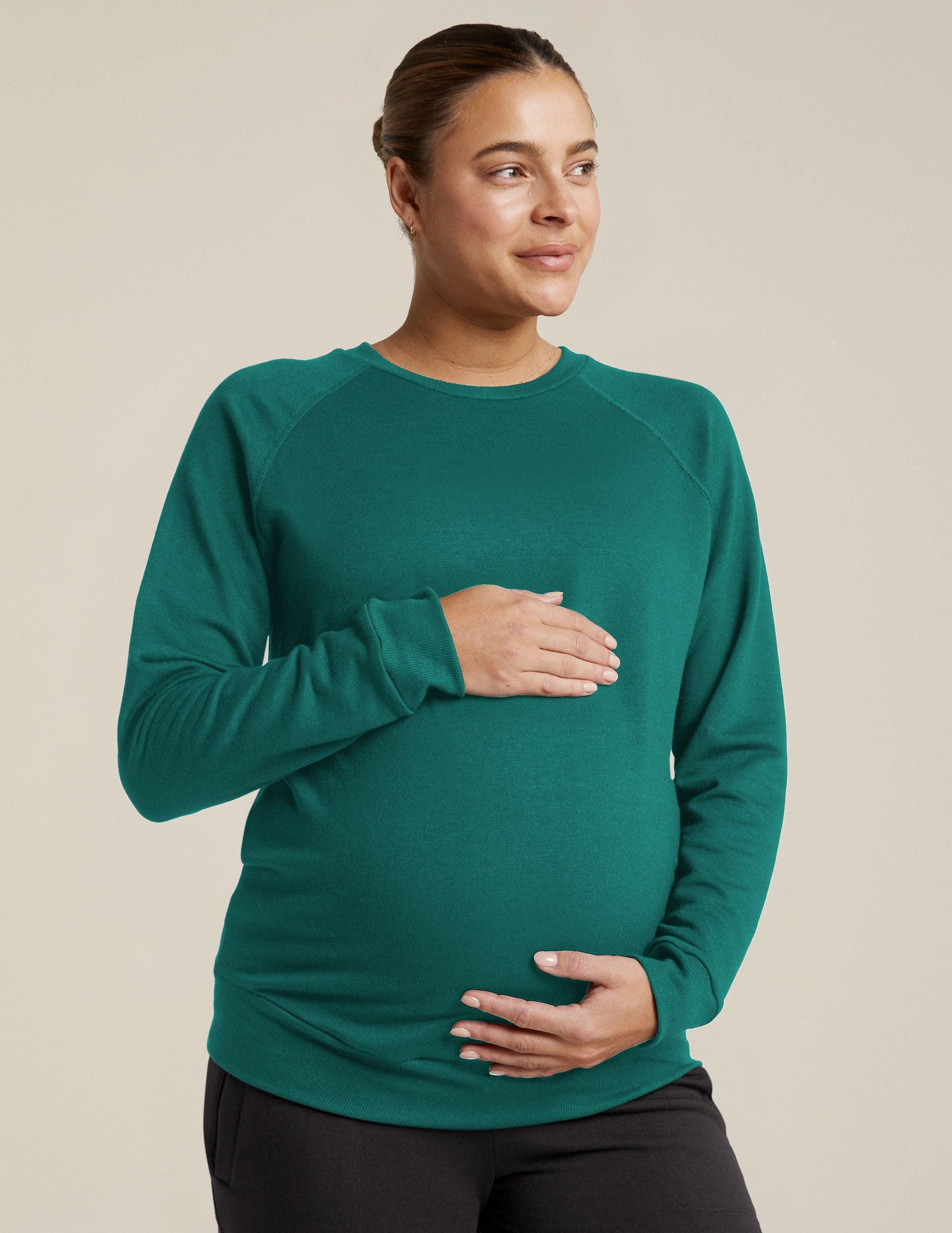 A maternity sweatshirt as cozy as pajamas, but so cute you'll want to wear it out and about, during and after your maternity months! This maternity pullover is complete with raglan sleeves, and relaxed fit throughout to keep you and baby comfy. Note: this go-to piece gets cozier after every wash with light pilling for a softer touch. 22" length measured from size Small Long sleeves Crew neckline Made to fit through pregnancy and beyond