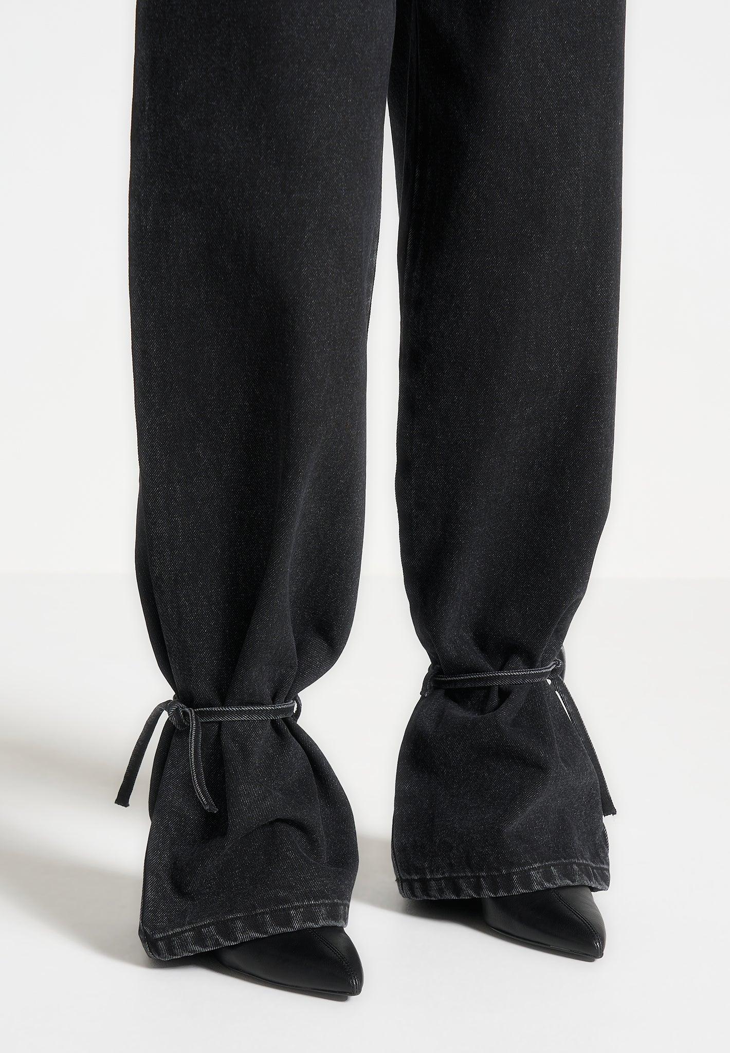 Elevate your look with our Wide Mid Rise Jeans in Washed Black. Featuring distinctive hem and waist tie details, these jeans bring a subtle touch of sophistication to any ensemble. Crafted from high-quality denim, they offer a perfect blend of comfort and style. Enhance your wardrobe with these versatile, statement-making jeans. Wide Leg Mid Rise Silhouette Waist Drawcord Detail 18oz Denim Side Slip and Back Patch Pockets Vegan Leather Manière De Voir Branded Patch 80% Cotton, 20% Polyester Always check the care label for wash instructions.