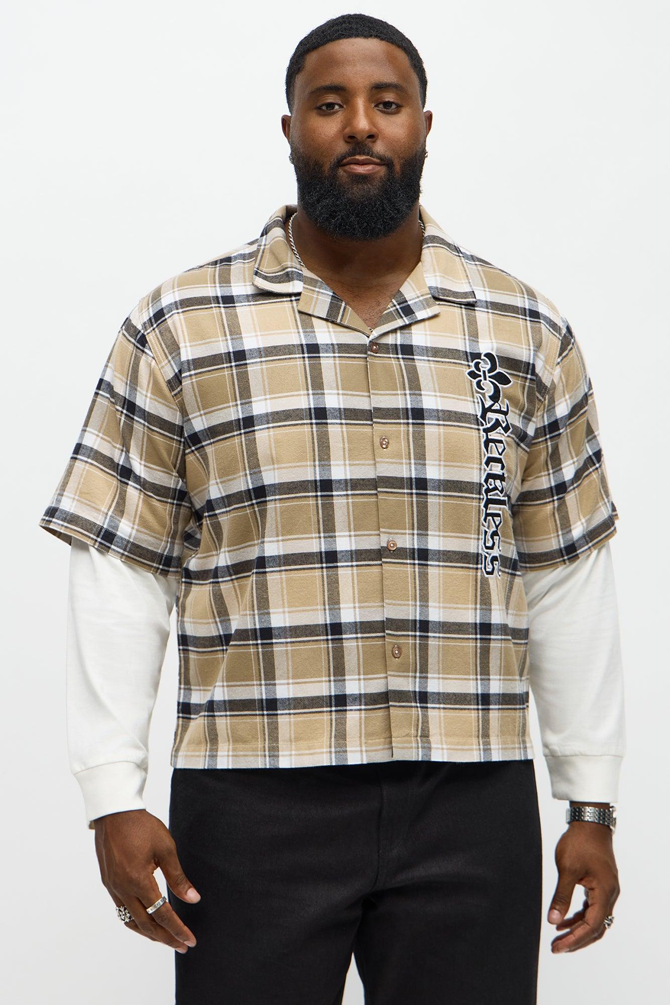 Fearless Flannel Cropped Long Sleeve Button Up Shirt - Brown Male