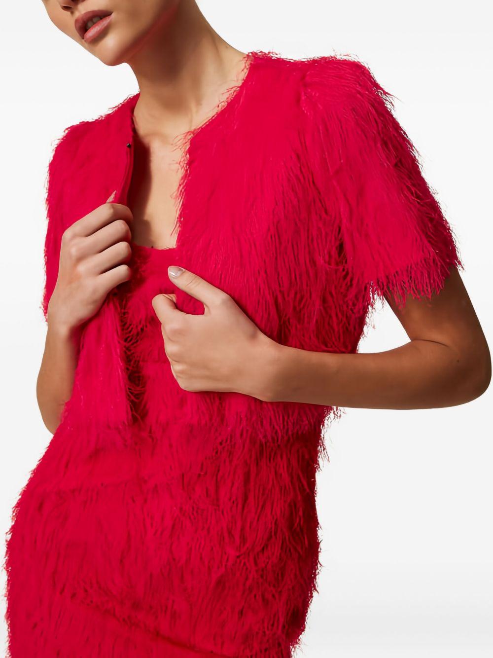 feather-effect short-sleeved jacket