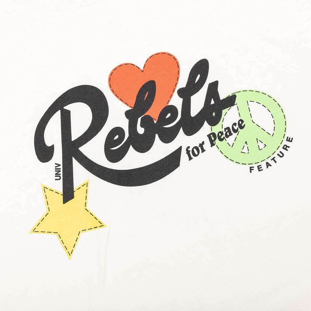 In our latest FEATURE x University of Nevada, Las Vegas graphics capsule, we introduce the Rebel For Peace Tee. Composed of 100% cotton, this design has a crew neckline with ribbed trims and a relaxed fit. The look is highlighted by the screen-printed 'Rebels For Peace' graphic with additional peace motifs at the front. The back continues the peace theme with a large flower peace sign paired with the FEATURE logo. 100% Cotton Relaxed fit Exclusive to FEATURE Crew neckline Ribbed trims Screen-printed graphics Co-branded graphics Style No: F120724X02-CAN
