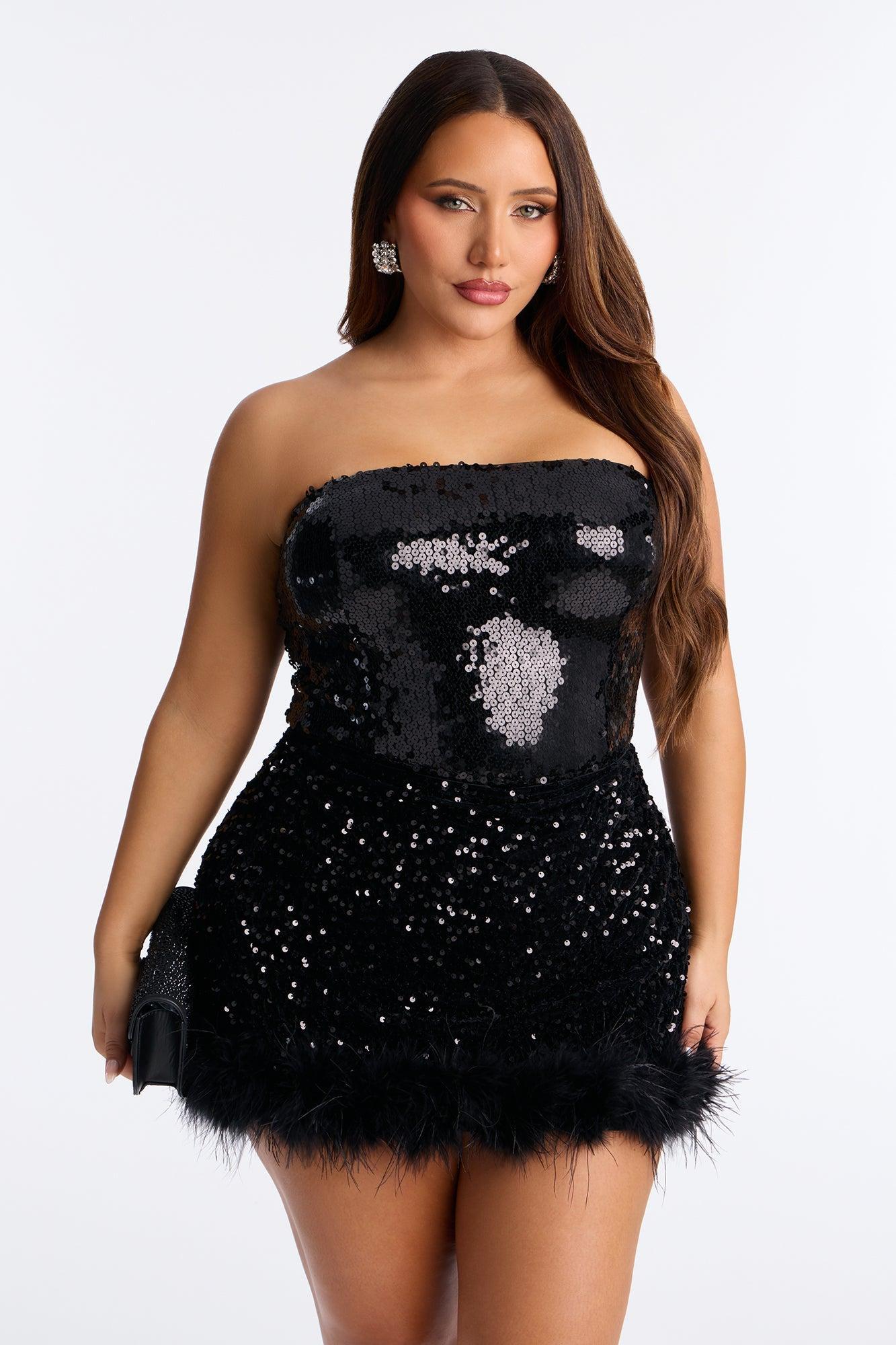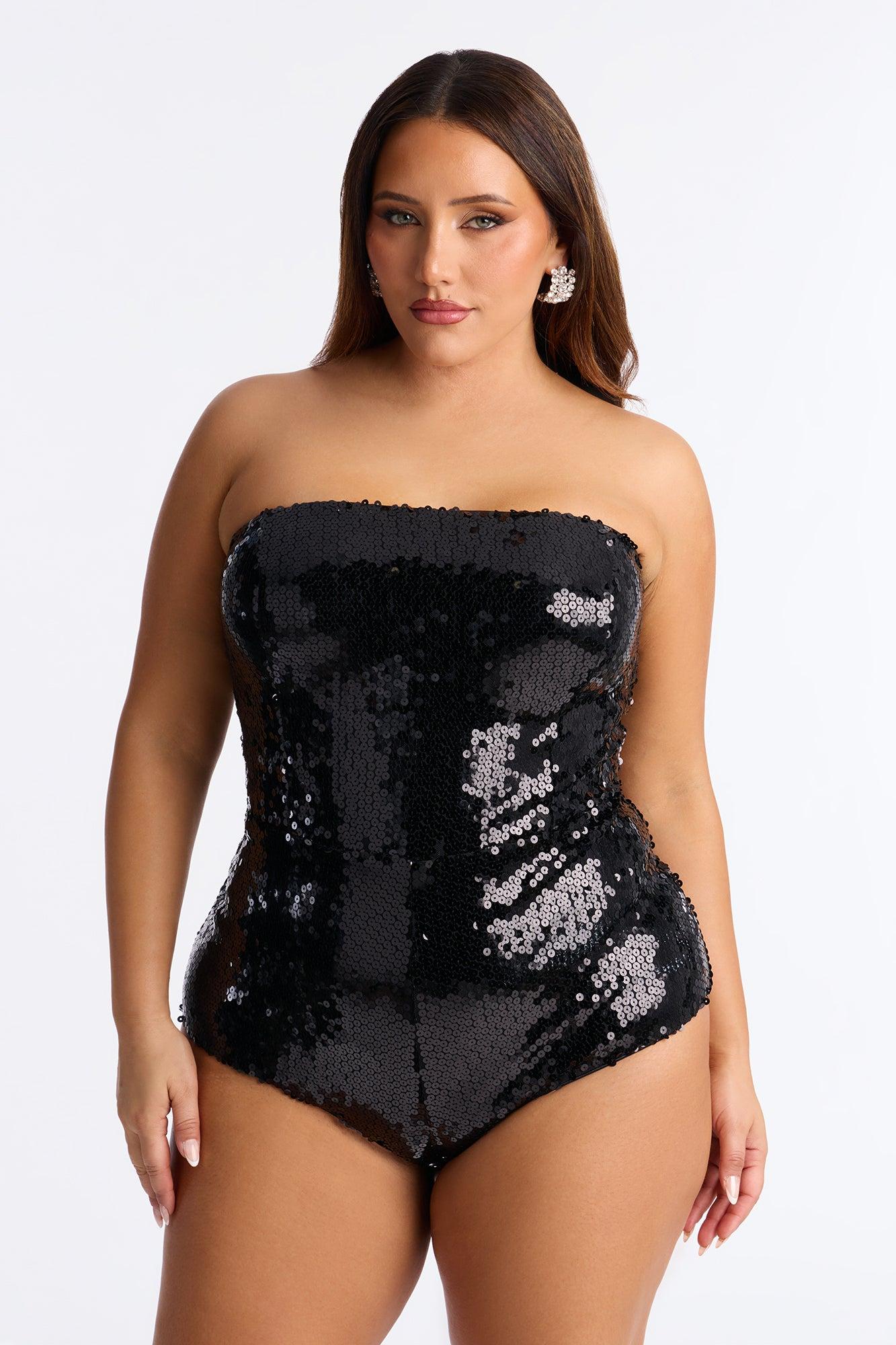 Feeling Sexy Strapless Sequin Bodysuit - Black Female