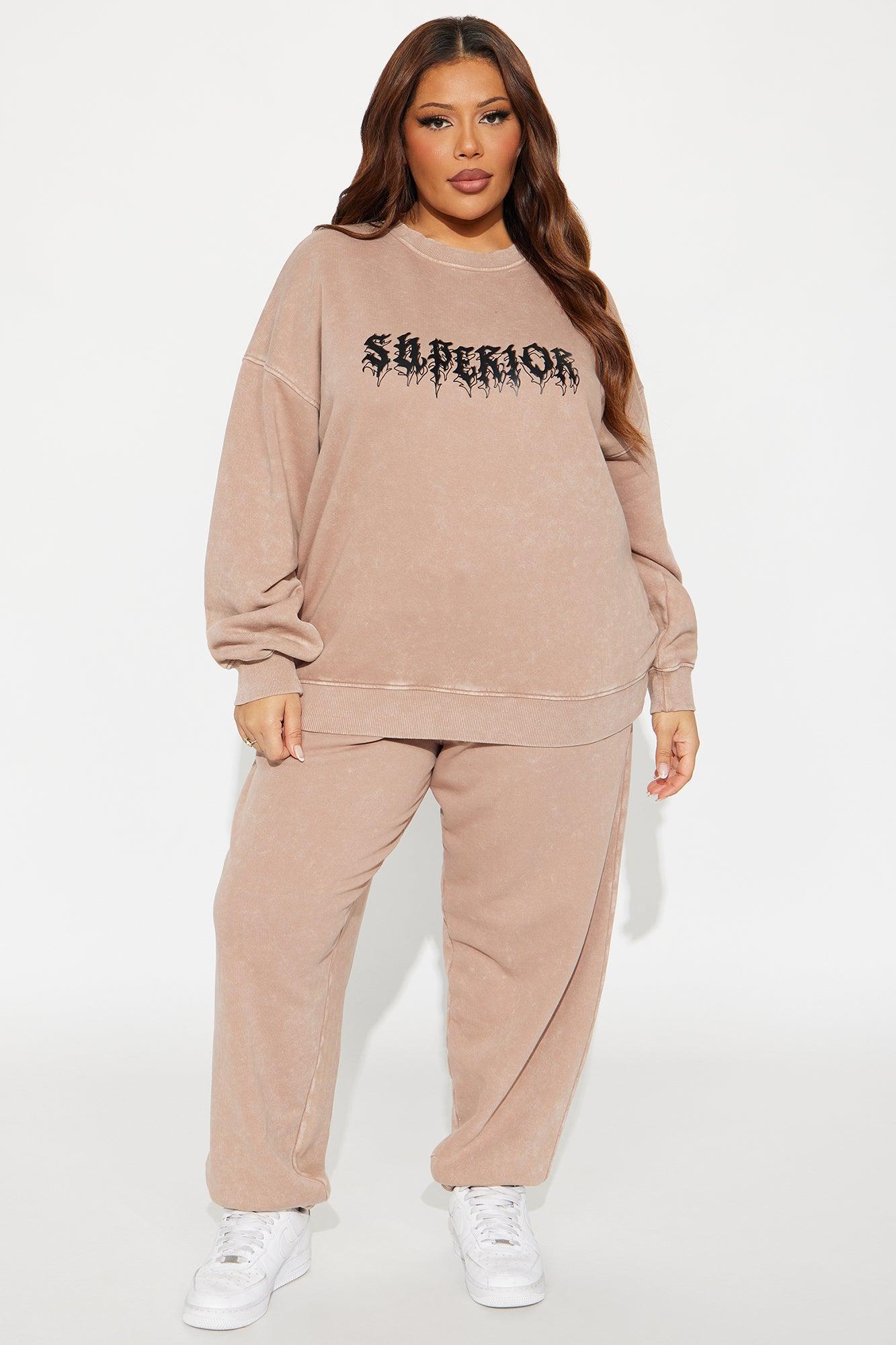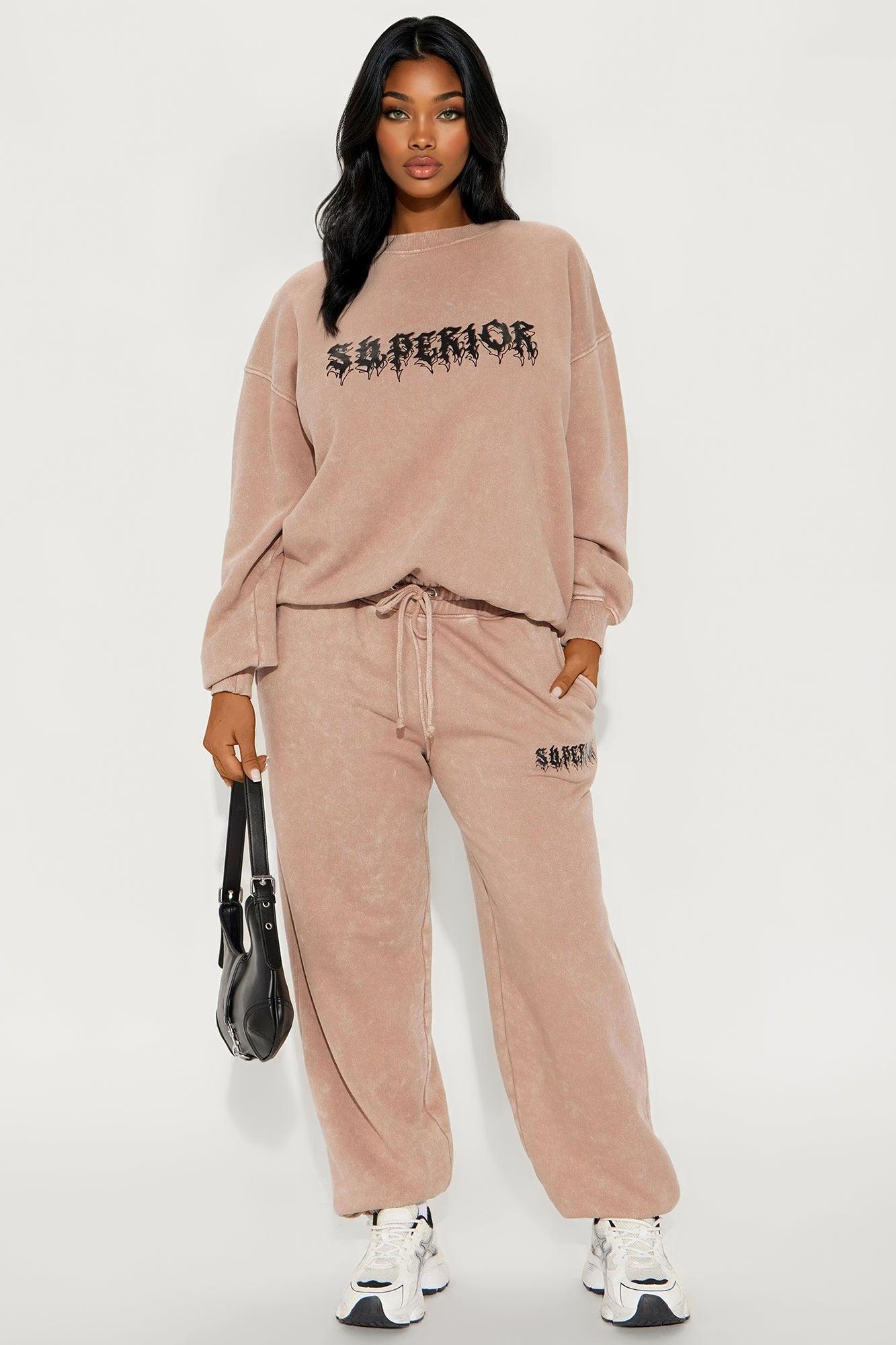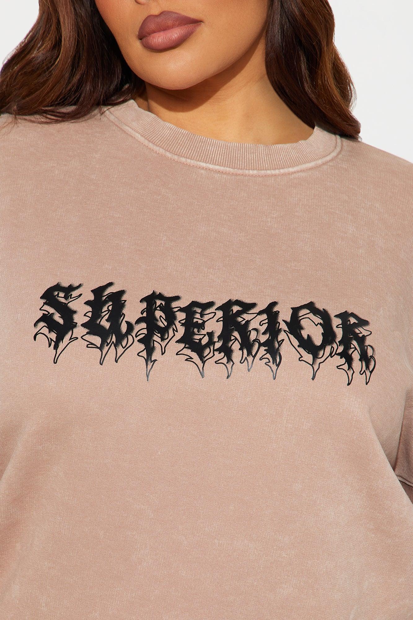Available In Taupe. Sweatshirt Crew Neck Long Sleeve Washed Front Screen Pair With "Feeling Superior Washed Fleece Pants" Disclaimer: Due To The Printing Process A Difference In Saturation May Occur. Each Garment Is Unique. Self: 60% Cotton 40% Polyester Imported