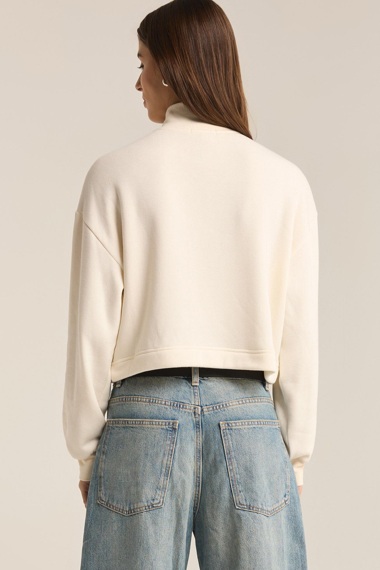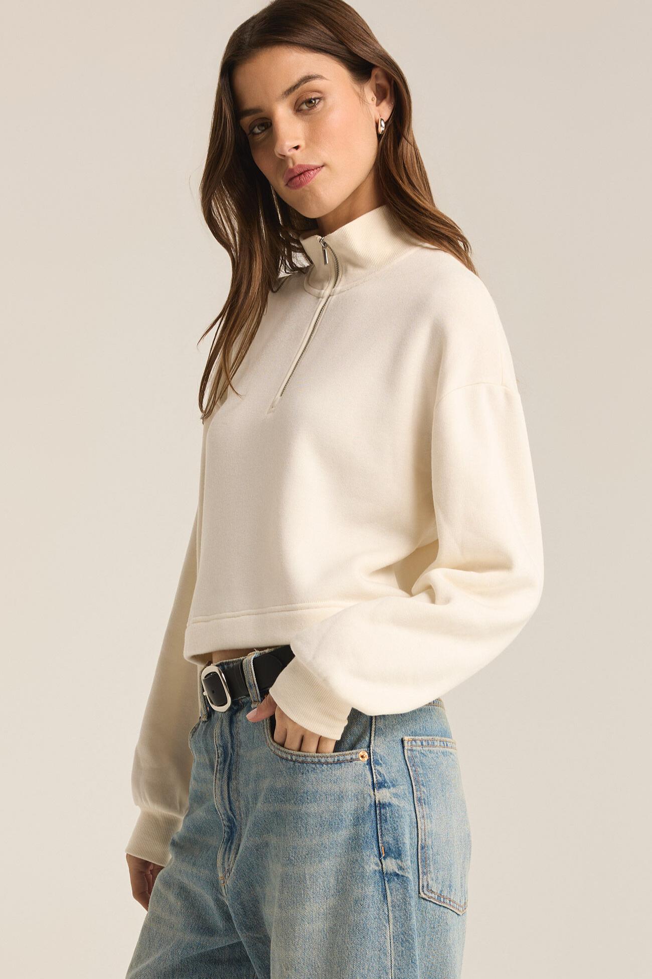 Add a touch of sporty chic to your look with this cropped long sleeve sweatshirt, featuring a half-zip neckline. This piece combines comfort with contemporary flair, making it perfect for pairing with high-waisted jeans or leggings for an effortless, casual look. Half zip Long sleeve Cropped length Midweight Regular fit Reverse Cozy Fleece: 52% Polyester, 48% Viscose
