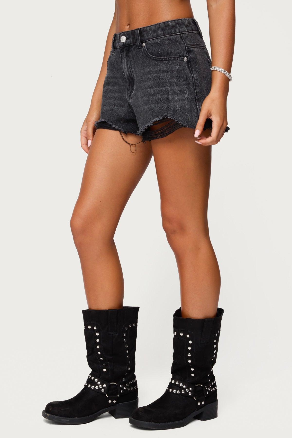 Shorts Distressed detailing Mid rise waist Denim fabric 100% Cotton Model wears size S Model height is 5'8 Item care: Machine wash at maximum 30ºC, do not bleach, tumble dry low, iron at a maximum of 110ºC, do not dry clean