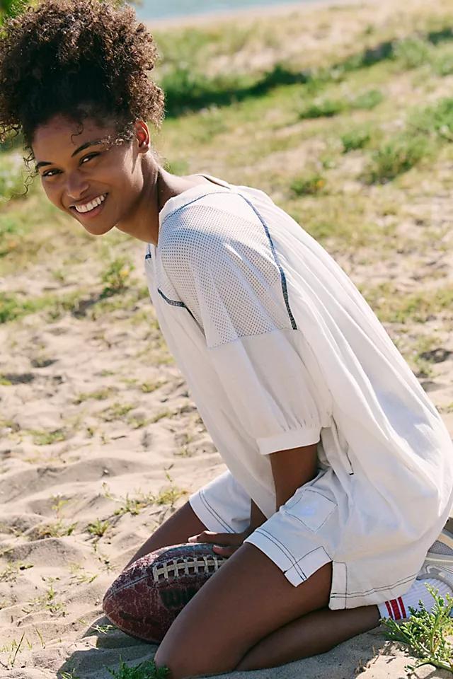 Add the most effortless piece to your workout wardrobe rotation with this timeless tee featured in a relaxed, slouchy fit with V-neckline, mesh-adorned shoulders, and lower side hems for added shape.