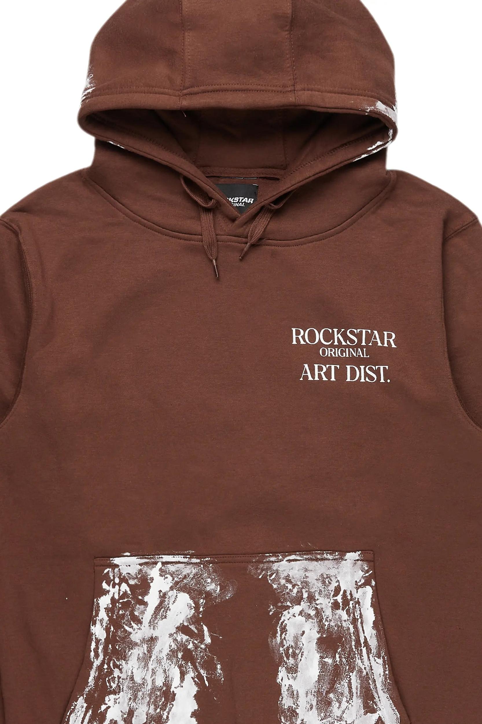 An oversized urban hoodie for women in brown. Designed with organic cotton and custom splatter paint for the perfect streetwear staple piece. Drawstring hood Kangaroo pocket Ribbed knit trims Regular-fit Custom paint splatter Printed RSO logos