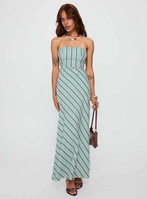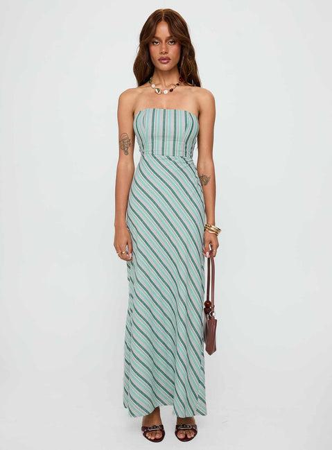 Finchie Strapless Maxi Dress Blue Stripe