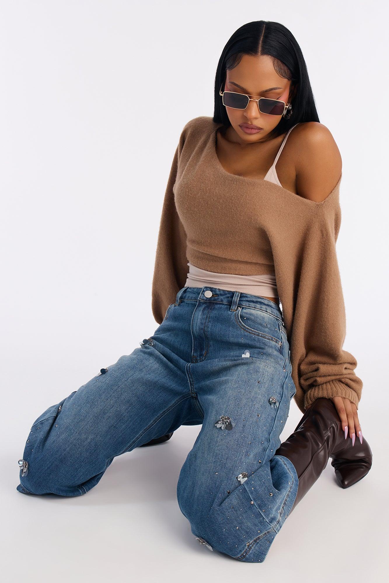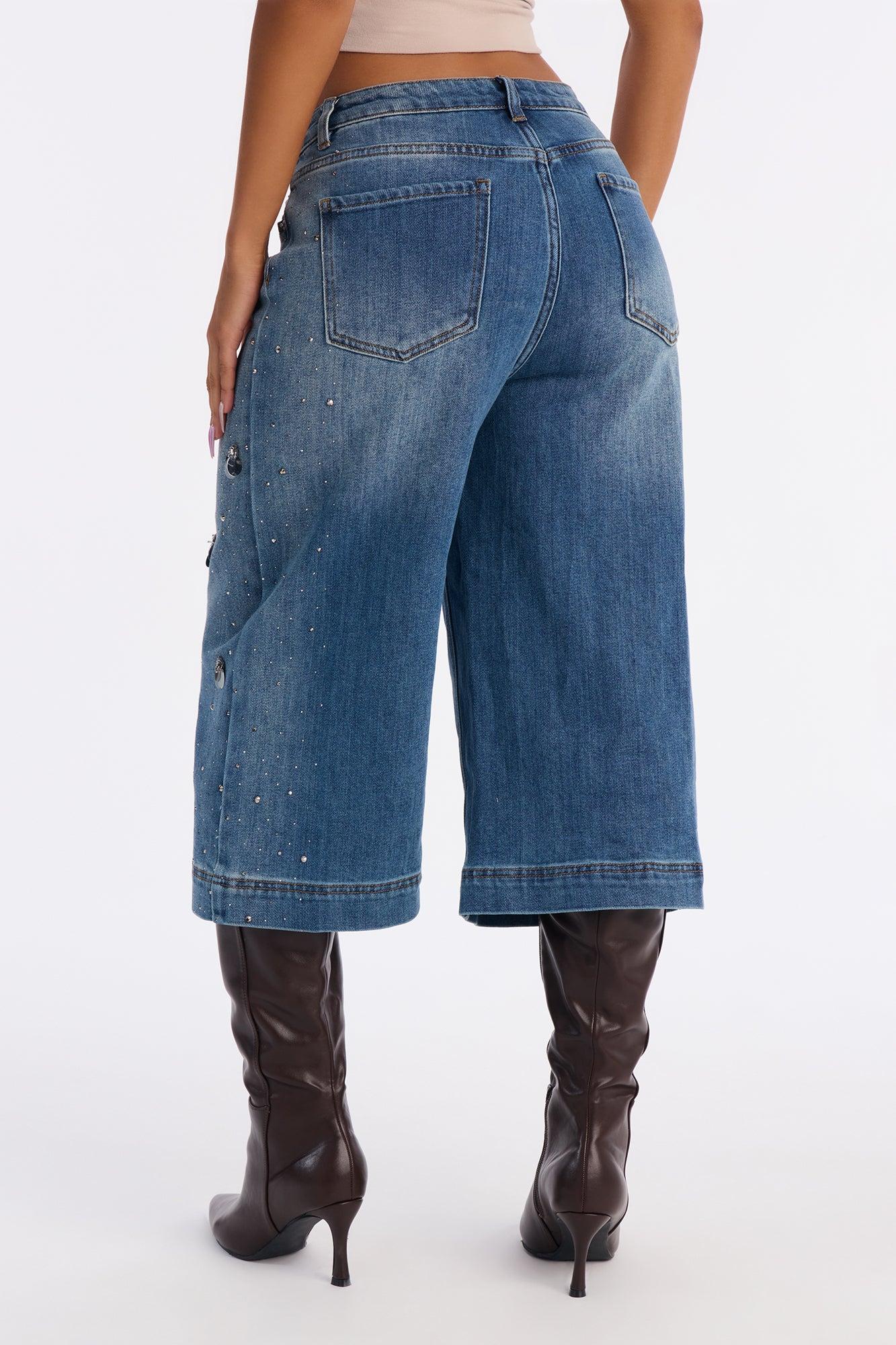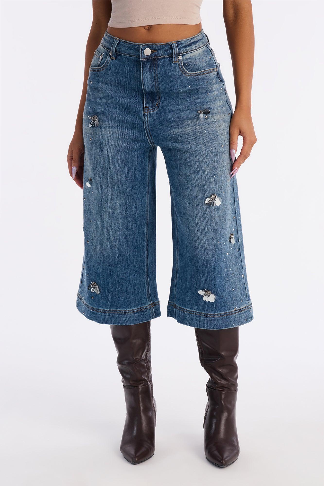 Fine Taste Embellished Culotte Jeans - Dark Wash Female