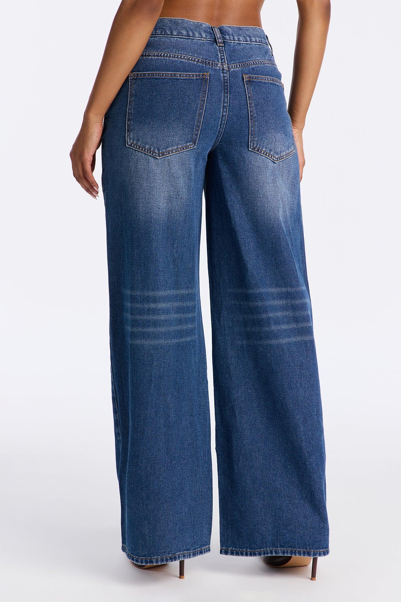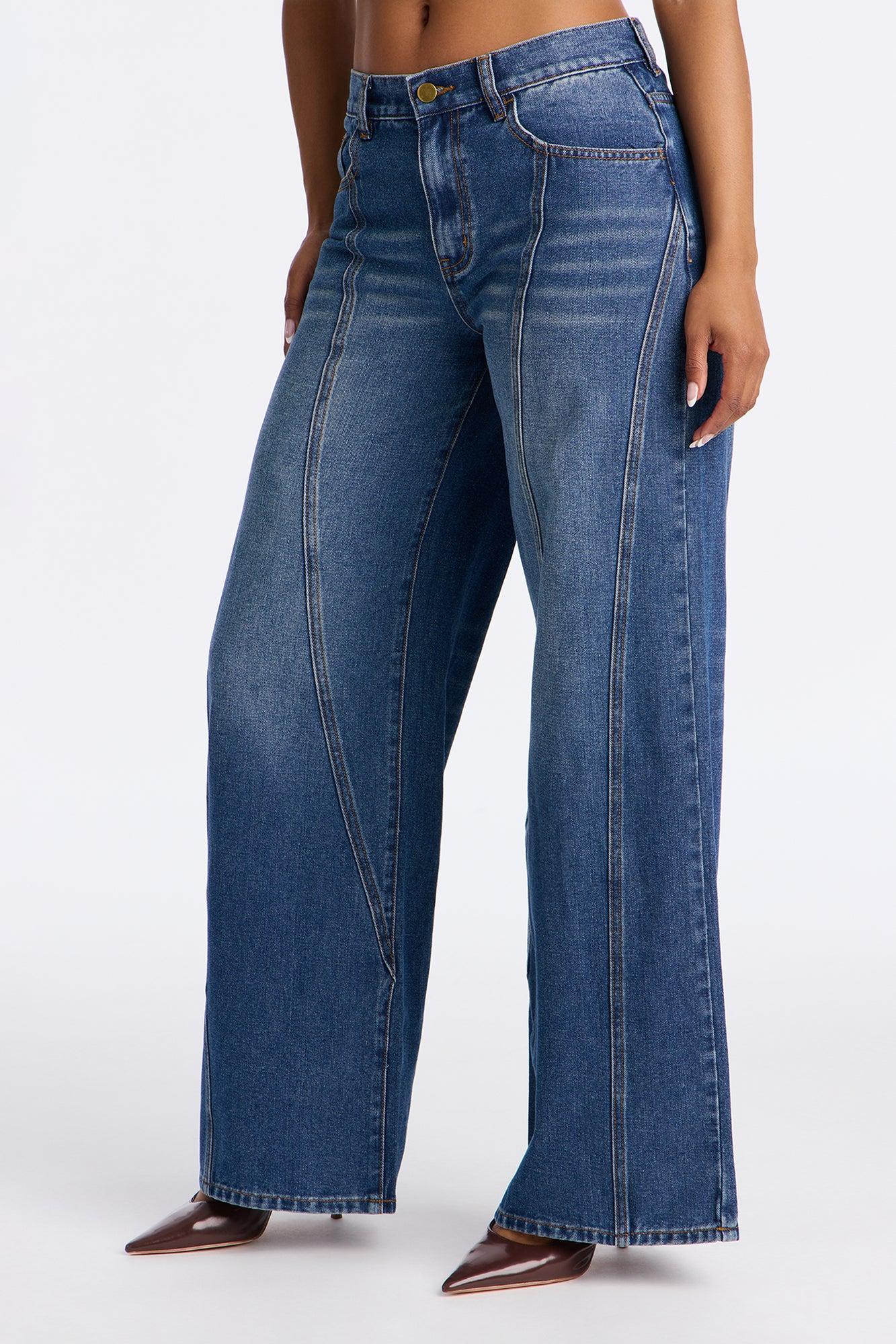 Available In Dark Wash. Wide Leg Jean 5 Pocket Seaming 11" Rise 32" Inseam Non-Stretch Disclaimer: Due To The Specialized Wash Process, Each Garment Is Unique. Self: 79% Cotton 21% Polyester Imported California Proposition 65WARNING: Cancer and Reproductive Harm - www.P65Warnings.ca.gov.